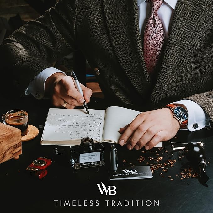 - ✒️Discover The All-inclusive Refillable Fountain Pen Set - Includes luxurious Majesti fountain pen, ink converter, 12 x blue ink cartridges, 12 x black ink cartridges, premium leather pen case, and a deluxe gift box - ready to be gifted. Included with every order is a complete instruction booklet for your Wordsworth and Black Pen Set. All the information you'll need to get started using and enjoying your luxurious writing tool will be right at your fingertips!