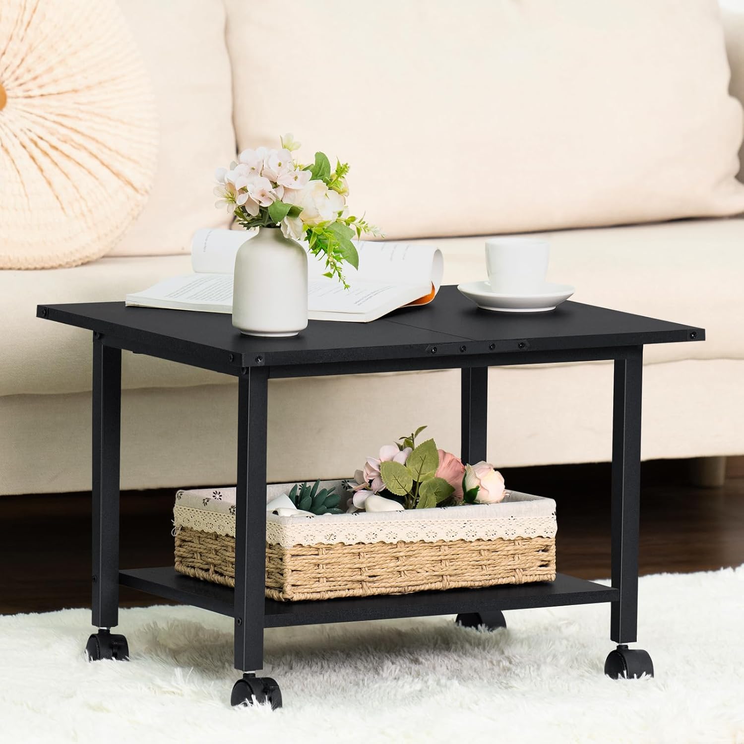 - [Multipurpose] Not only can it be used as a printer table, it can also be used as a kitchen storage shelf, sofa side table, nightstand, etc. It is suitable for office, kitchen, bedroom, living room, which is an ideal storage shelf for organizing and storing. The simple space-saving design goes with almost any decor and never goes out of style.