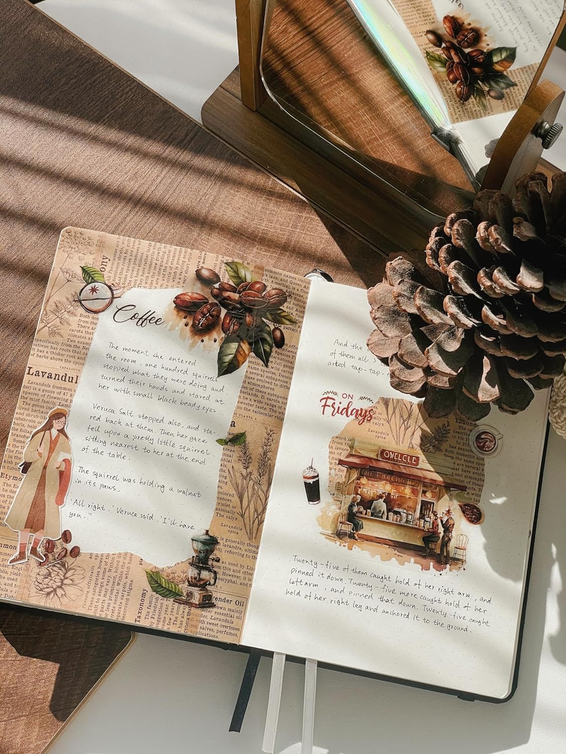 WT Caffeine Canvas Wide Washi Tape, Single Roll, Original Designs, Watercolor Vintage Cafe Paper Tape, Coffee Theme for Journals, Scrapbooks, Bujo Planners, DIY Crafts Supplies