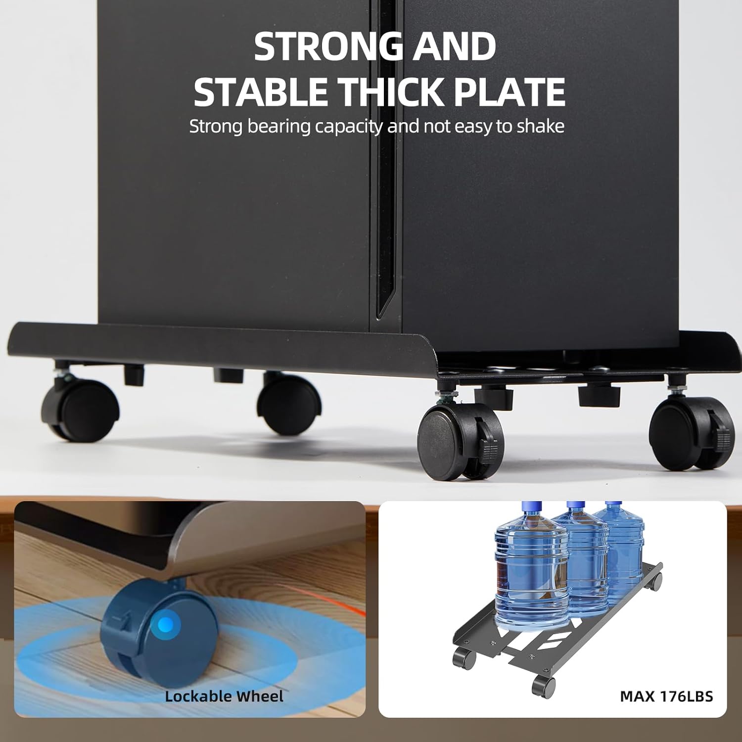 - Easy Movement: Four 360Β°rotating universal wheels can move the computer tower to the position you want, making it easy for you to move to clean the ground. And four of the wheels can be locked to keep them stationary when needed. when you need it, it can easily go under your computer desk or printer stand and stay in place