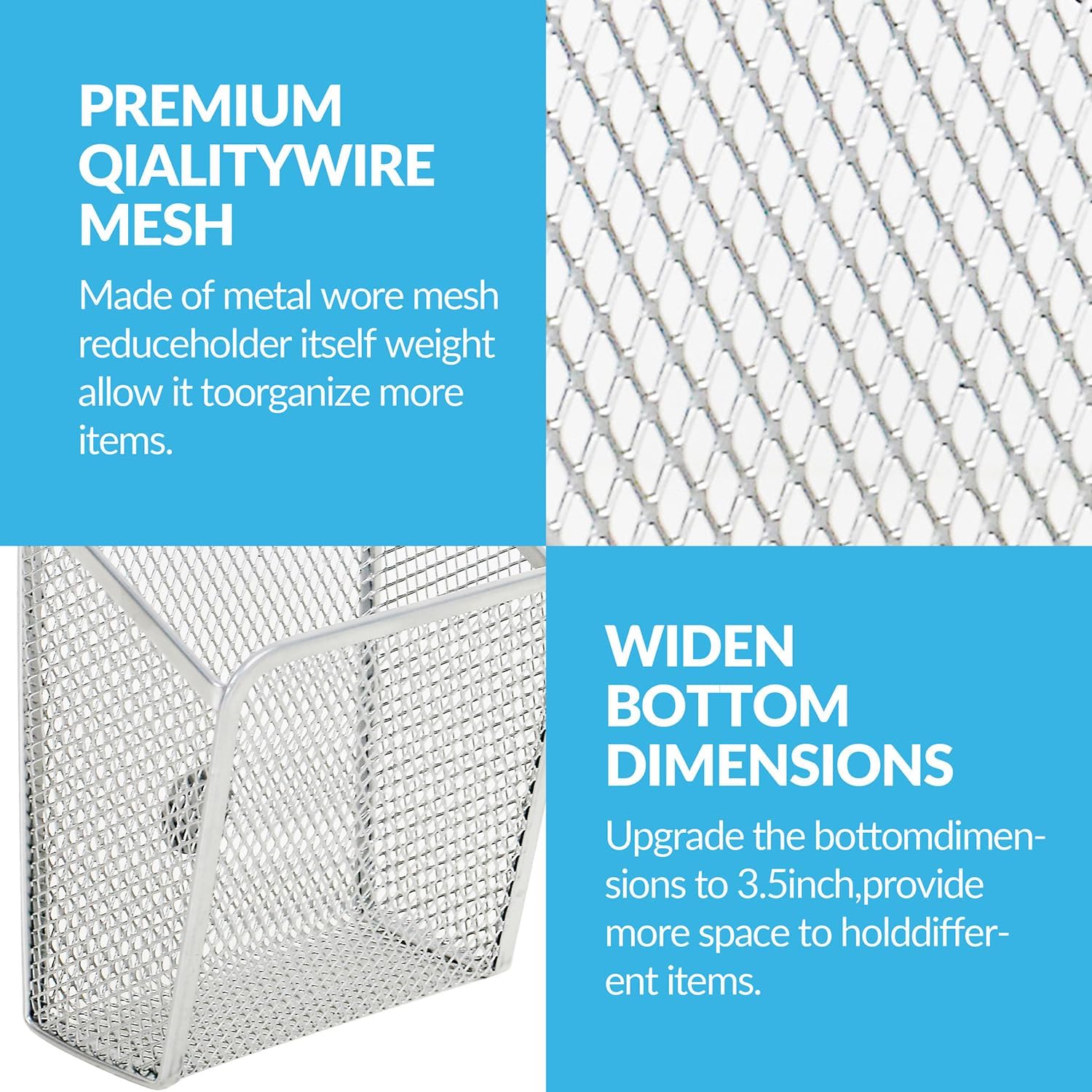 LUCYCAZ Magnetic Pen Holder - Single Magnetic Pencil Locker Holder Organizer, Silver Mesh Marker Holder Pen Basket for Whiteboard, Refrigerator and Locker