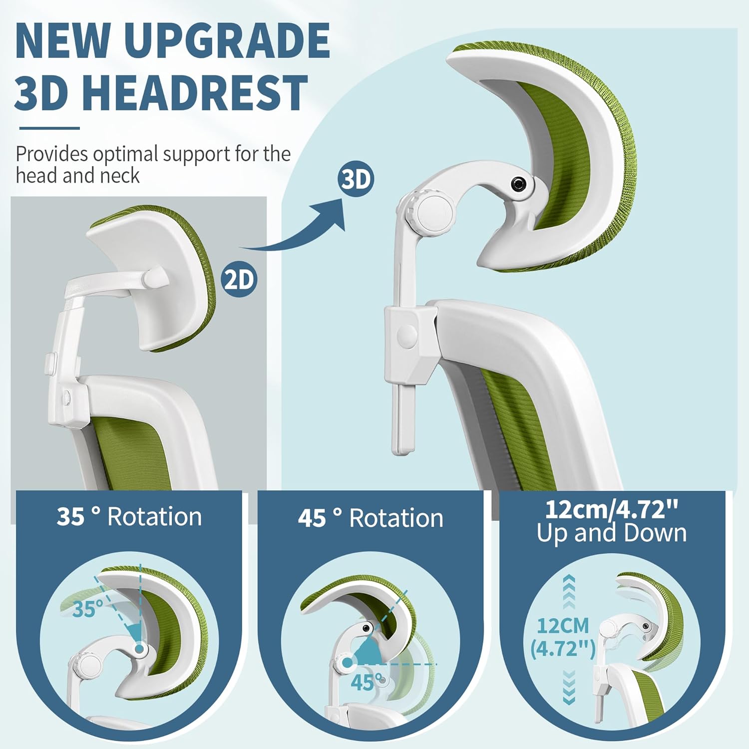 - Flexible Adjustable Functions:The rolling swivel computer chair is built with adjustable heigh: 10cm/3.9inch lift up and down, 5cm/2inch adjustable headrestοΌ30Β° flip upοΌ and backrest, 90-120Β° tilt adjustment, 90Β° flip-up handrail and 360Β° free rotation, supporting shoulder, back, waist and coccyx relaxation. Upgraded adjustable headrest and lumbar support, widened backrest and high-density armrests, which enhance ergonomically tailored comfort, to meet the needs of work and leisure time.