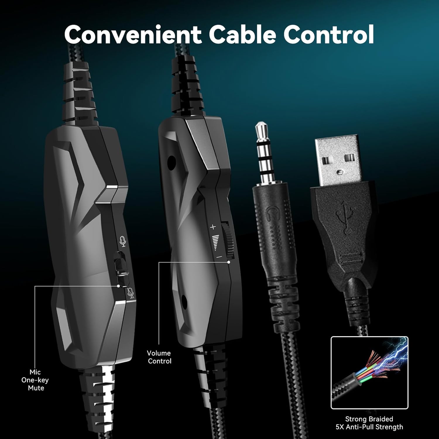 - 【Professional Gaming Headset】Gaming headphones with 6.5ft high tensile strength, anti-tangle braided cable, rotary volume control and button microphone mute.
