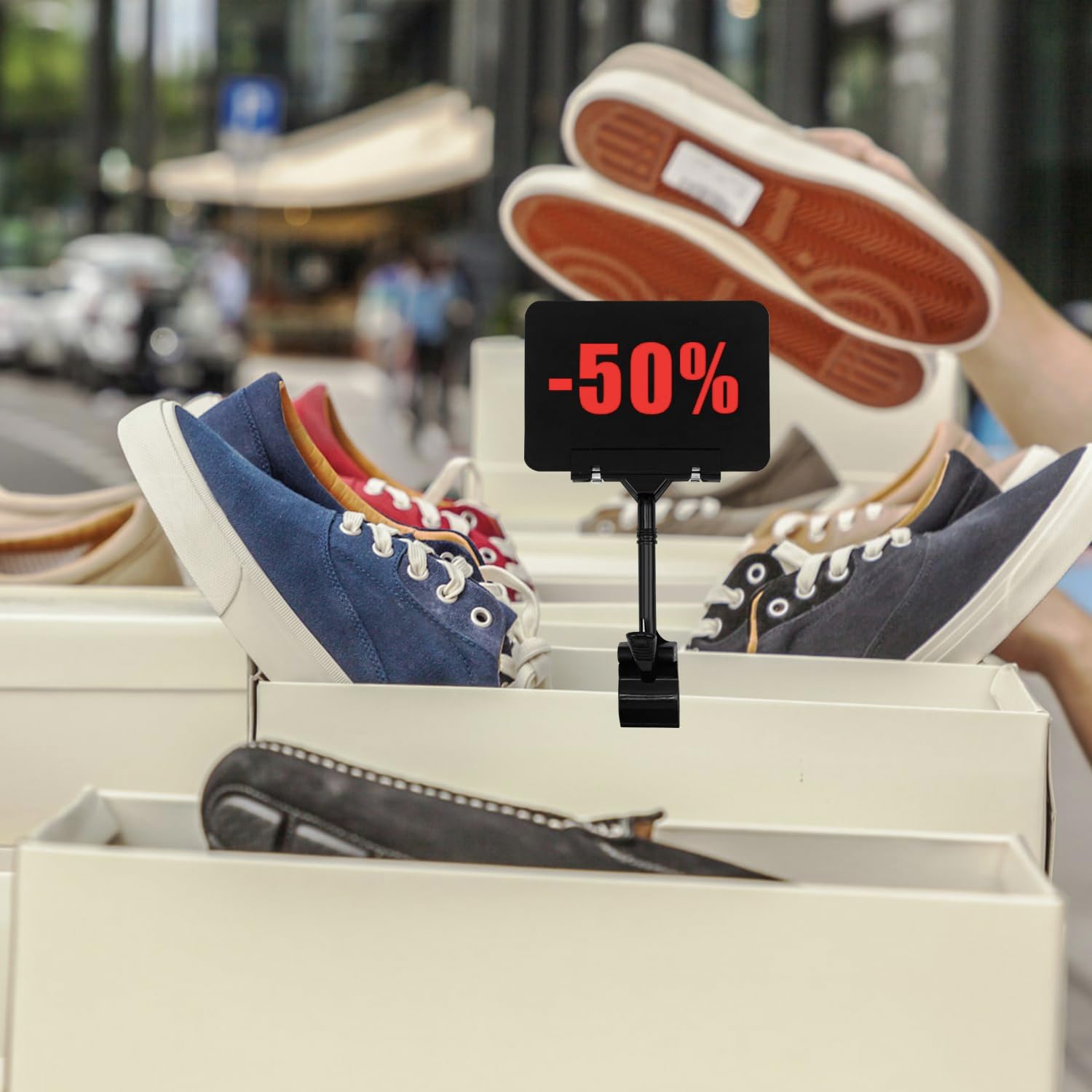 - Versatile Clip-On Sign Holder- The Clip-On Sign Holders cater to diverse needs, ideal for offices, stores, supermarkets, or any retail environments. Showcasing price tags or promotional messages with our Retail Merchandise Rack Sign becomes a breeze. Enhance your retail space with our easy-to-use, adjustable sign holder display tools