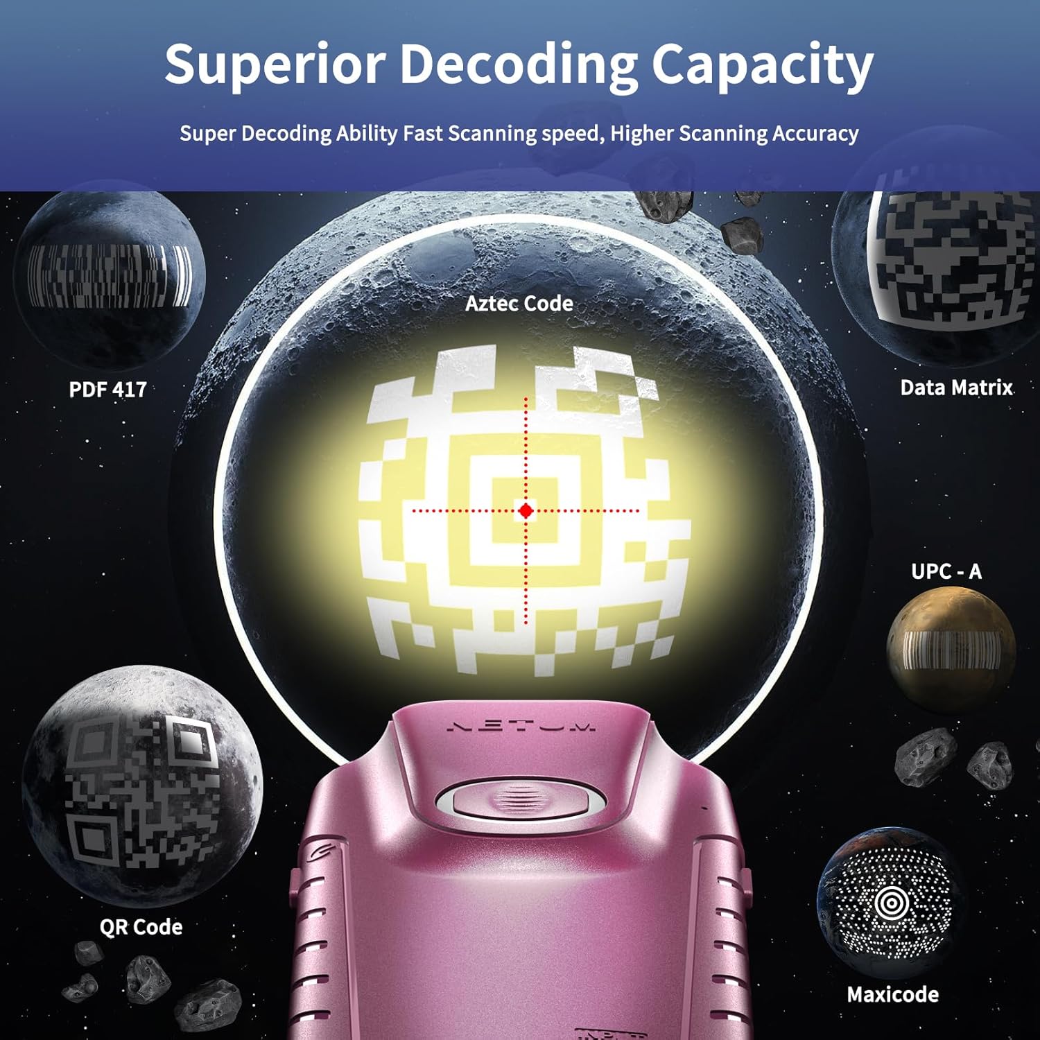 - Superior Scanning Performance - The NETUM E900 bluetooth barcode scanner has Equipped with Newland's Megapixel CMOS sensor 1280H Γ 800V pixels (1M) which can easily capture most of the 1D / 2D barcodes on labels or displayed on screens., Resolution β₯3mil, such as ISBN/UPC/EAN,UPC/EAN With Supplementals, Code39, Interleaved 2 of 5, Code 128, Codabar,QR, Data Matrix,DotCode, GS1 Databar (RSS) etc.