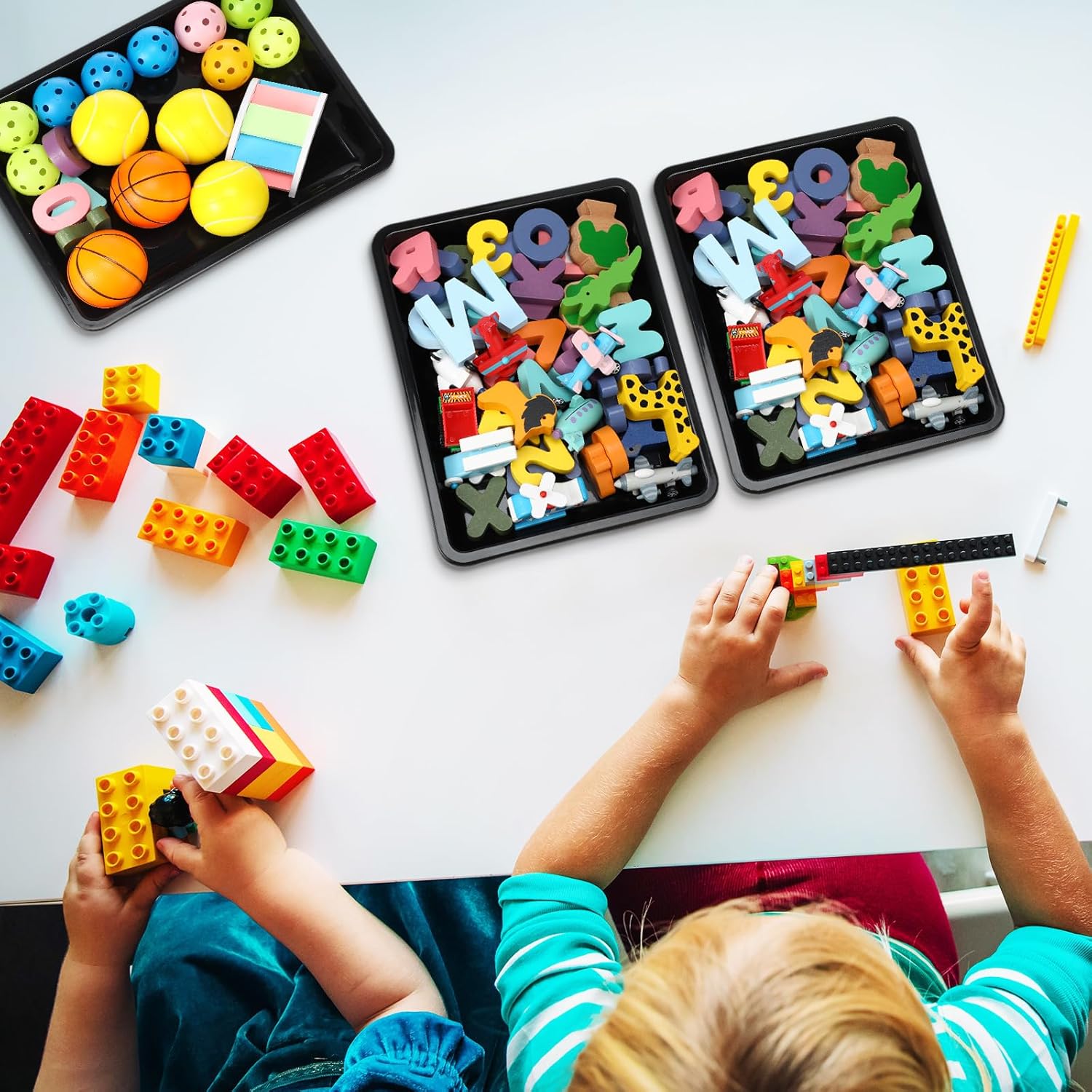 Maitys 24 Pcs Plastic Art Trays 11 x 8.7 x 1 Inch Activity Craft Tray Organizer Serving Tray Stackable Storage Sand Trays for School Painting Beads Crafts DIY Projects(Black)