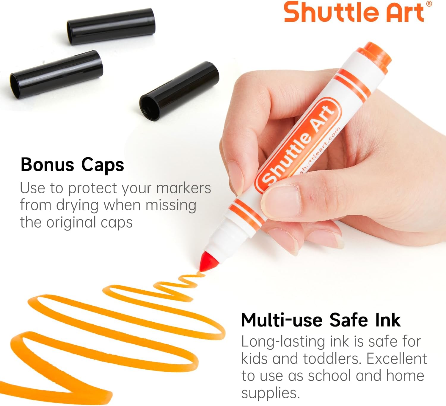 - LARGE VALUABLE SET: Shuttle Art 216 pack washable marker set comes in a box, containing 27 each of 8 different colors including red, orange, yellow, green, blue, purple, brown and black.