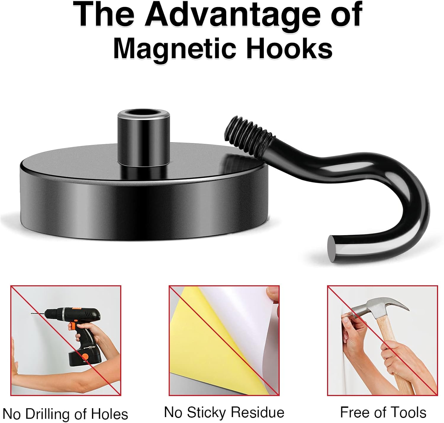 - 【Excellent layer Coating】- Our metal magnetic hooks come with an excellent triple-layer coating of Ni+Cu+Ni, which greatly reinforces their corrosion resistance. This coating is the best available, providing a shiny and rust-resistant surface that helps prevent chipping or cracking. The coated steel cup also provides protection for the heavy duty magnetic refrigerator hooks. With this excellent layer coating, you can trust that our magnetic hanging hooks are safe to use and will last a long time