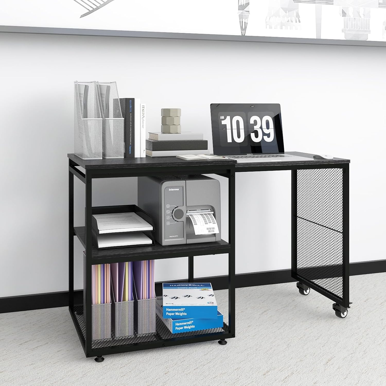 - 【Sturdy & Durable】The heavy duty printer stand is made of high-quality wood and metal frame, with excellent stability and durability, solid construction and long service life. This space saving table has 2 industrial grade swivel casters to move and extend table, all of them are equipped with brakes for stability.