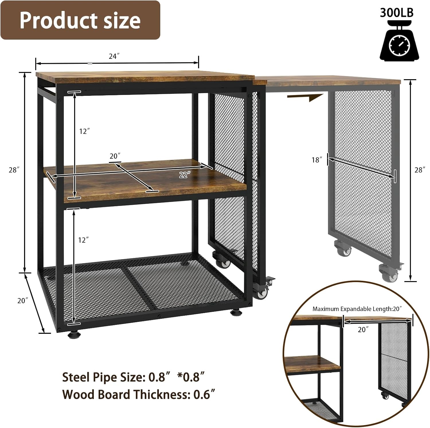 - 【Sturdy & Durable】The heavy duty printer stand is made of high-quality wood and metal frame, with excellent stability and durability, solid construction and long service life. This space saving table has 2 industrial grade swivel casters to move and extend table, all of them are equipped with brakes for stability.
