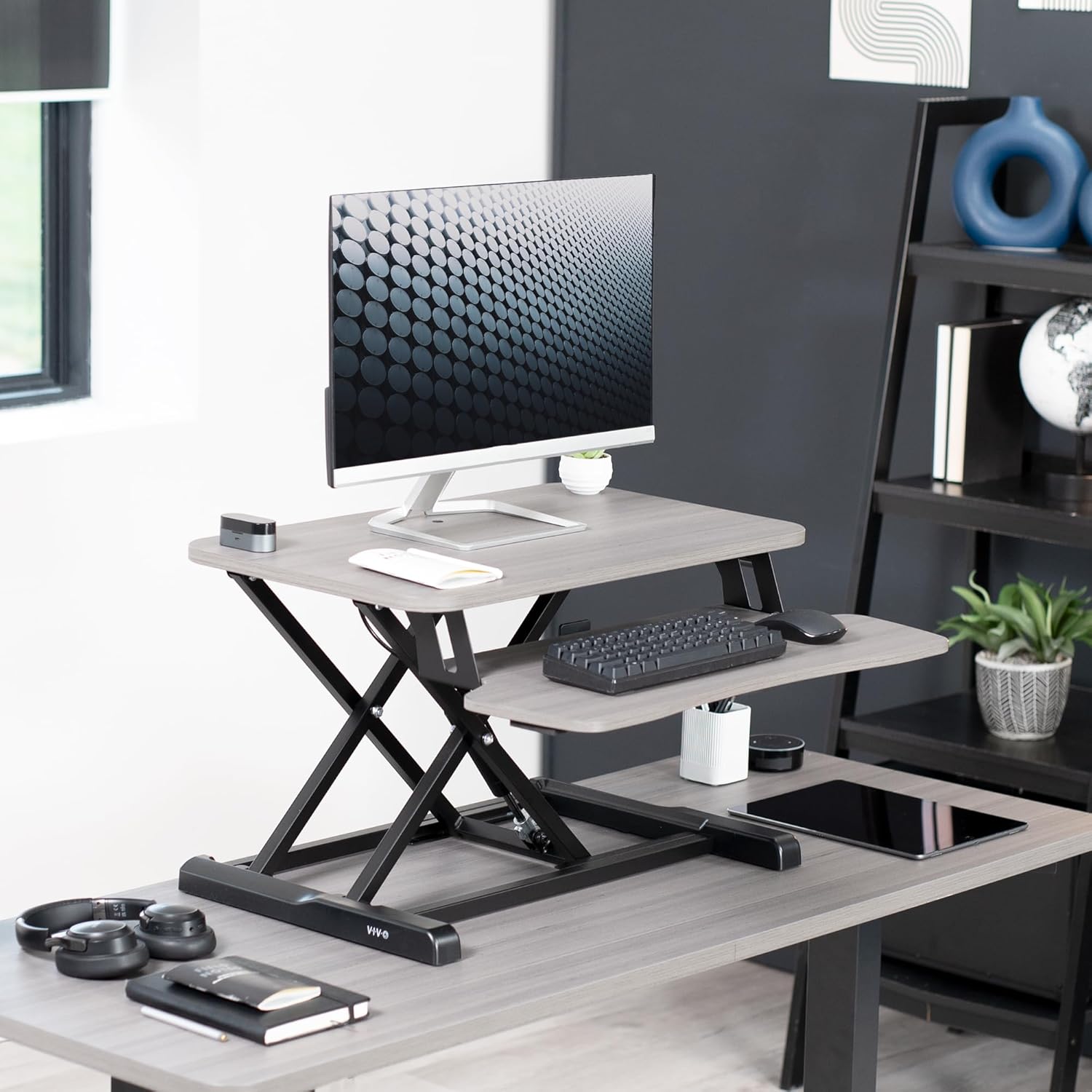 VIVO 26 inch Desk Converter, K Series, Height Adjustable Sit to Stand Riser, Dual Monitor and Laptop Workstation with Keyboard Tray, Gray Top, Black Frame, DESK-V026KG