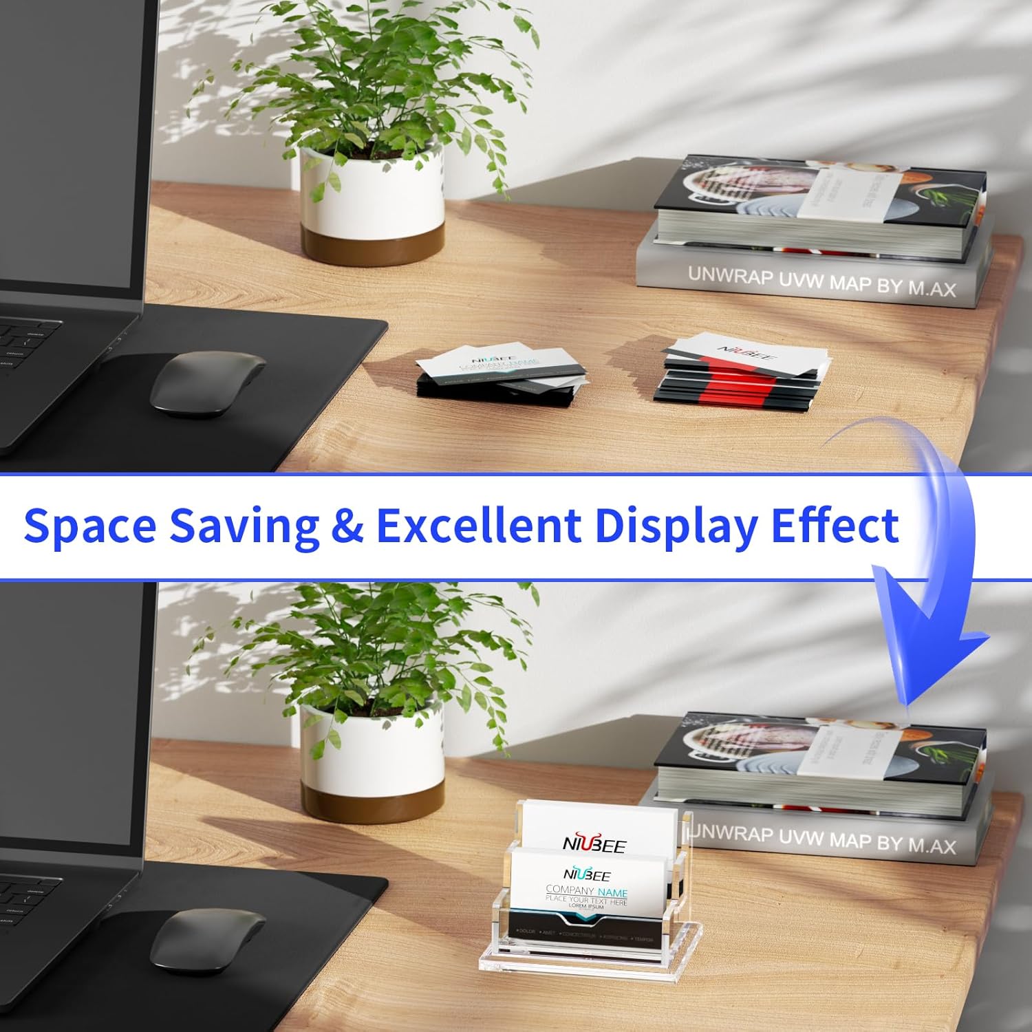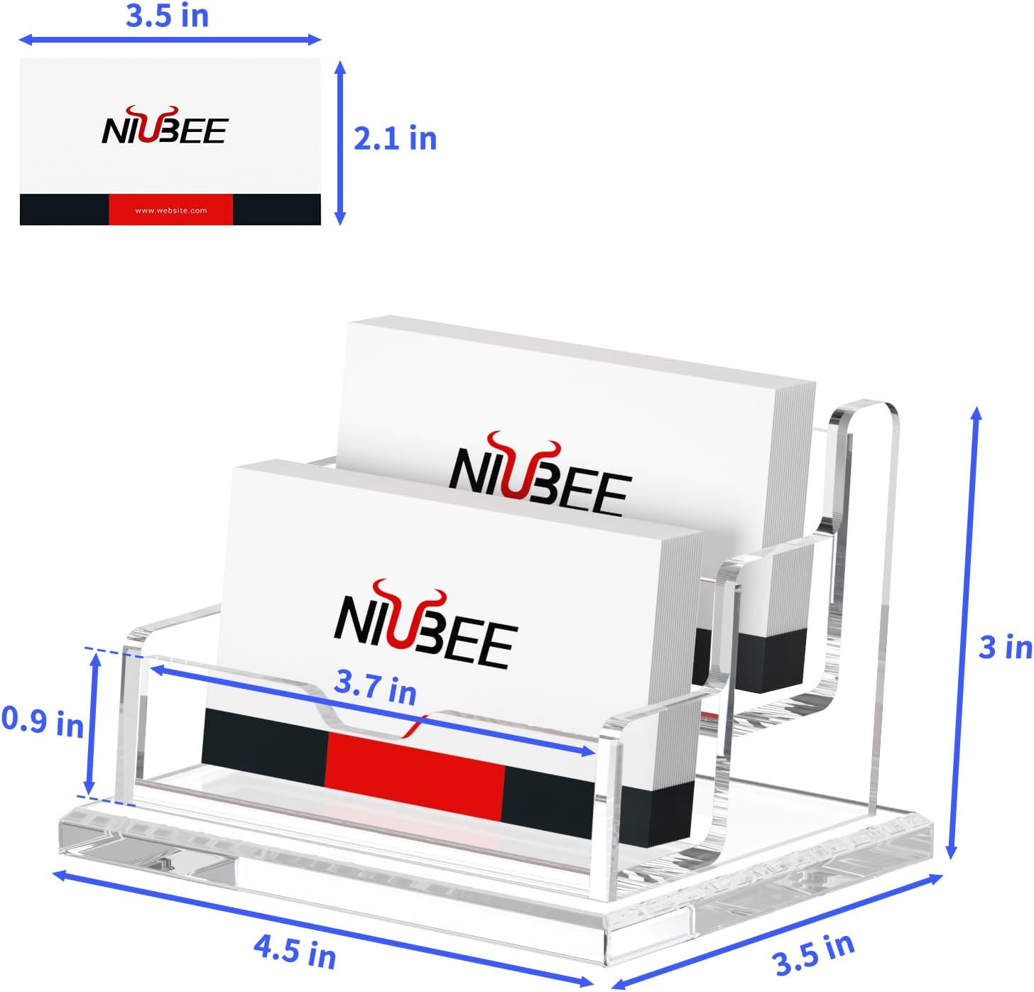 NIUBEE Clear Business Card Holder 2 Tier Acrylic Business Card Stand, 2 Slots Business Card Display for Desk Counter, 150 Card Capacity, 1 Pack
