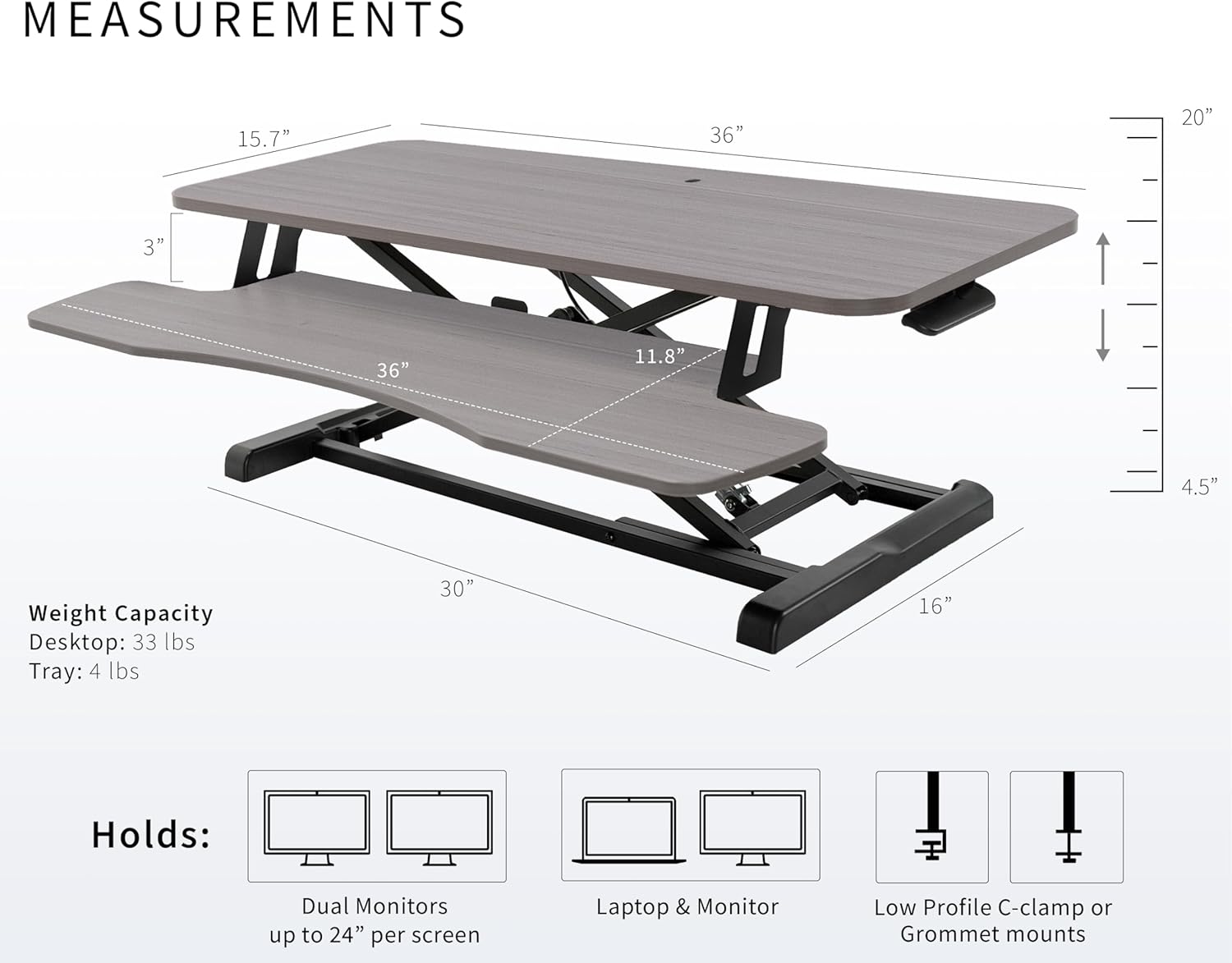 VIVO 36 inch Desk Converter, K Series, Height Adjustable Sit to Stand Riser, Dual Monitor and Laptop Workstation with Wide Keyboard Tray, Gray Top, Black Frame, DESK-V036KG