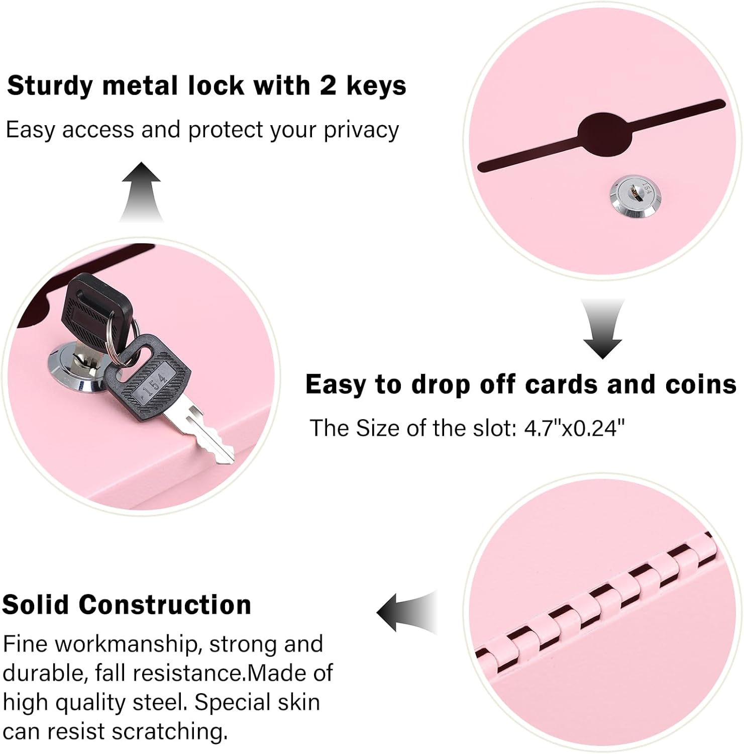 xydled Suggestion Box with Key Lock, Locking Metal Donation Ballot Drop, Comment Prayer Box with Slot for Office, Fundraising, Church, School, Home Use, Pink, 8.7 x 7.1 x 5.9 Inches