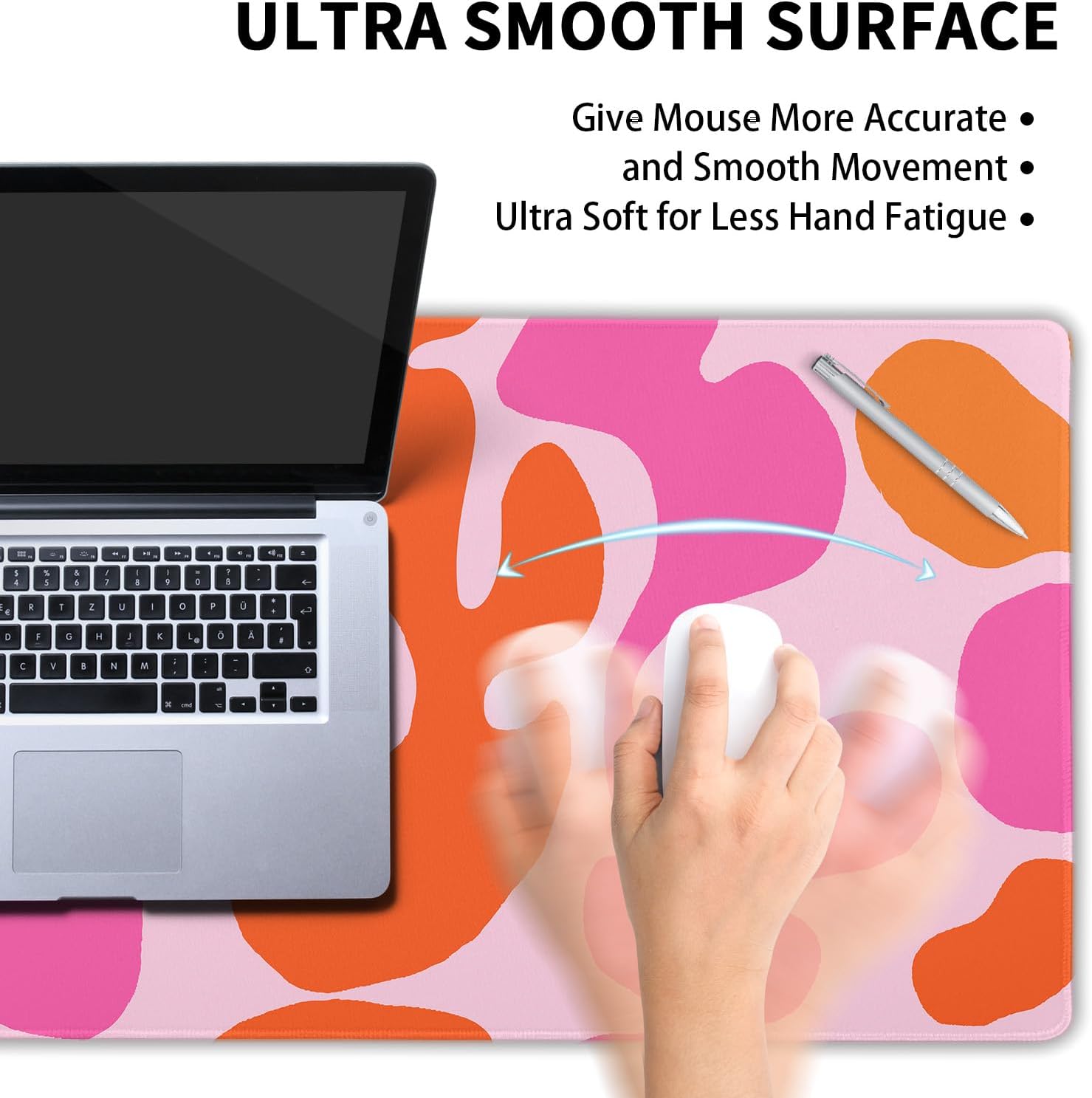 Pink Orange Cute Gaming Mouse Pad XL Kawani Preppy Abstract Modern Geographic Extended Large Desk Mat Mousepad Non-Slip Rubber Base Stitched Edge Long Desk Pad for Desktop Office PC,31.5×11.8 Inch