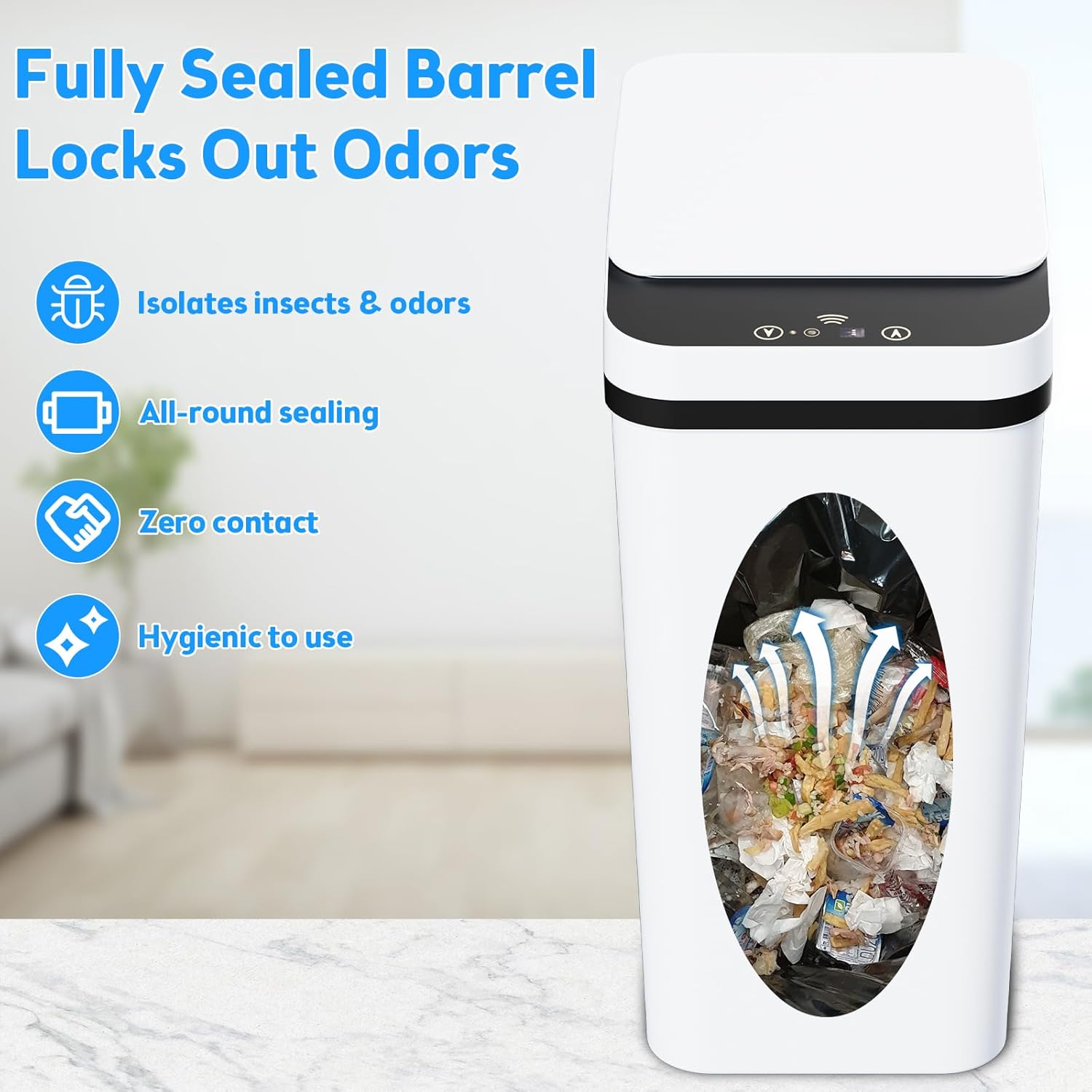 KOEYLE 2 Pack 2.2 Gallon Automatic Touchless Garbage Can, Small Motion Sensor Smart Trash Can, Slim Waterproof Trash Bin for Bedroom, Bathroom, Office, Living Room, White