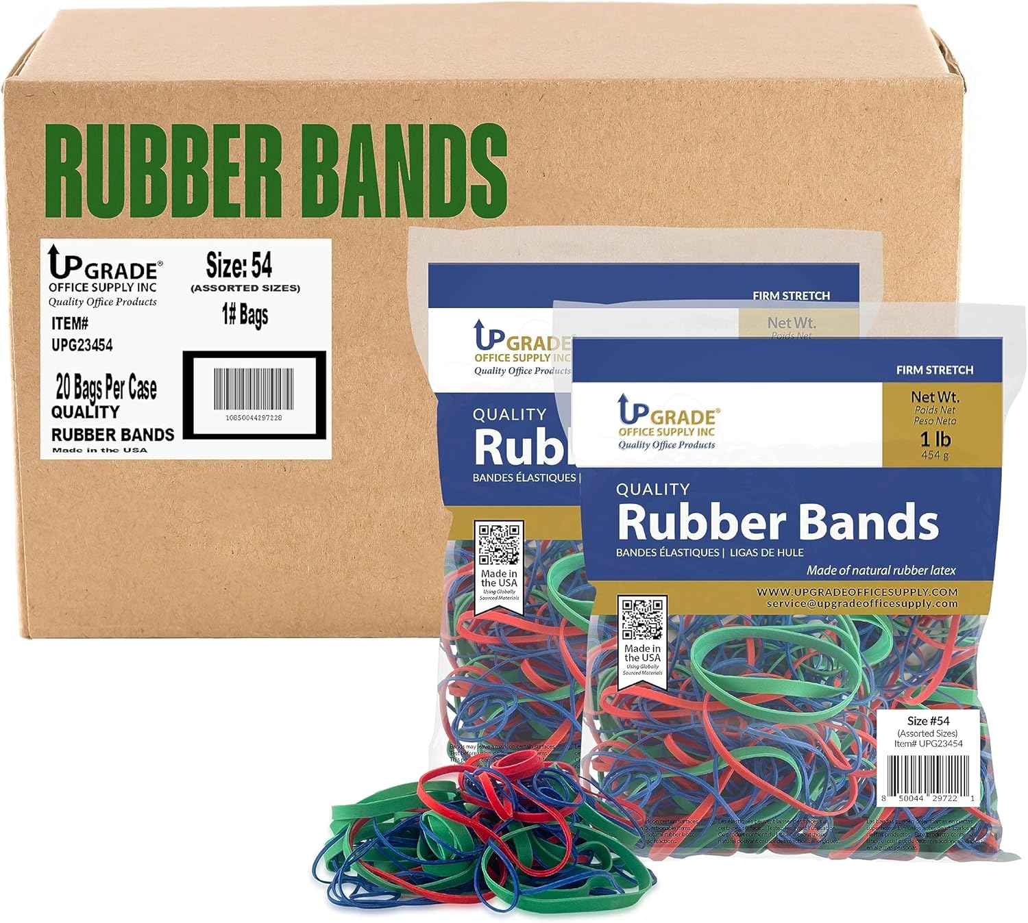 Upgrade Office Supply UPG23454PK2 Rubber Bands, Assorted Size and Color, 1 lb Bags, 2 Pack, USA