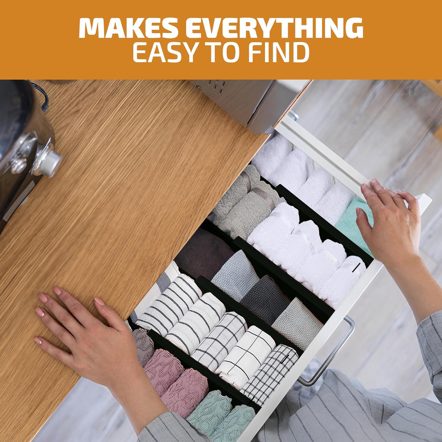 - ✅ EASY & SECURE INSTALLATION: Quickly install these dividers without the need for tools. The strong, spring-loaded mechanism ensures they remain firmly in place, even with daily use. Additionally, the EVA foam at each end prevents slipping and protects your drawers from scratches or pressure damage, ensuring both stability and safety.
