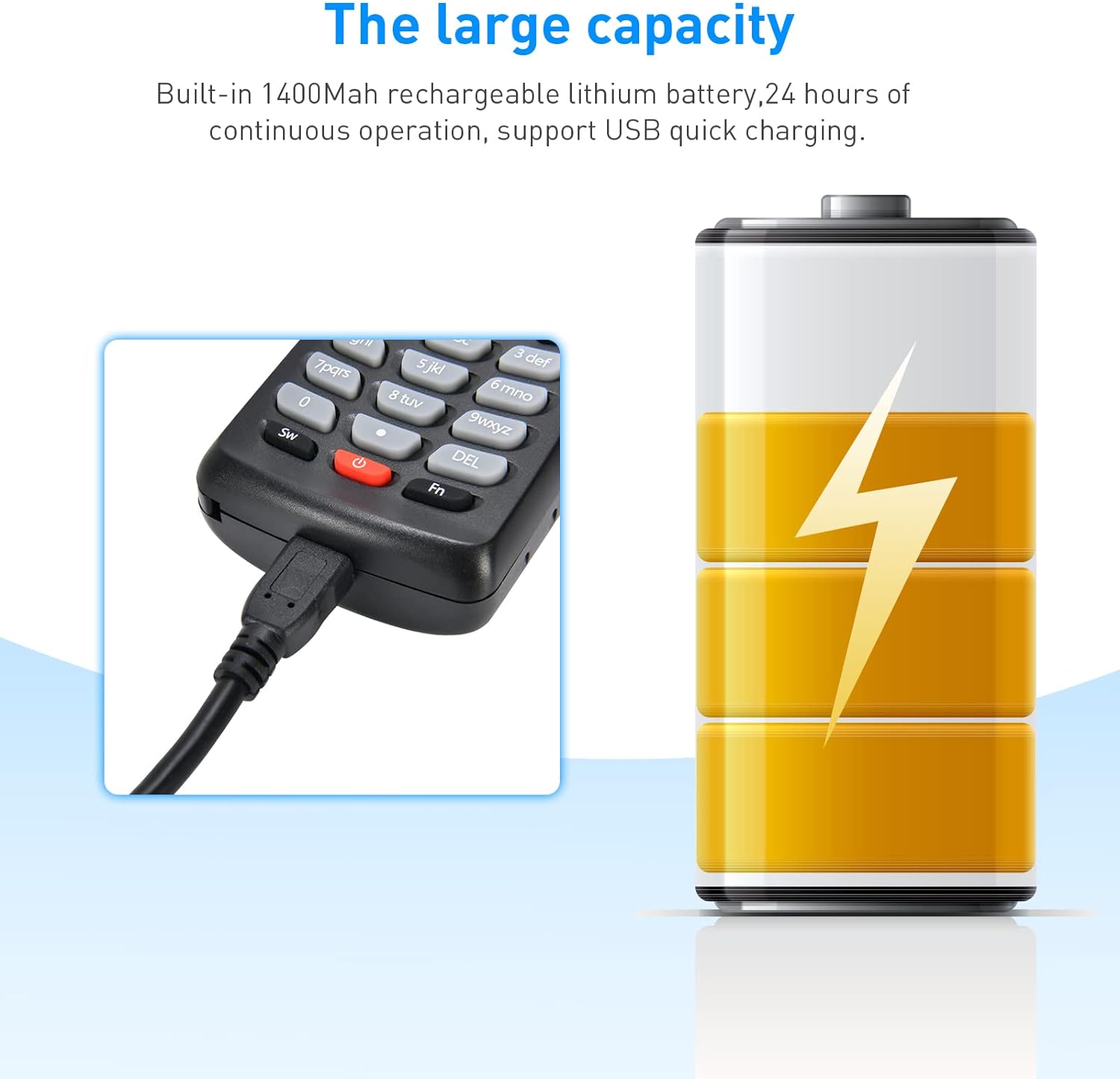 - 1000Mah Battery & Flash Storage - The portable barcode scanner has a built-in 1000Mah lithium polymer battery. Internal 4MB flash, the device can store barcode data when away from the receiver and update the data when back to wireless transmission range. Support up to 100,000 barcodes storage when offline. And if you donβt need to transfer data to the pc, you can have it stored in the device and export it when you need to.