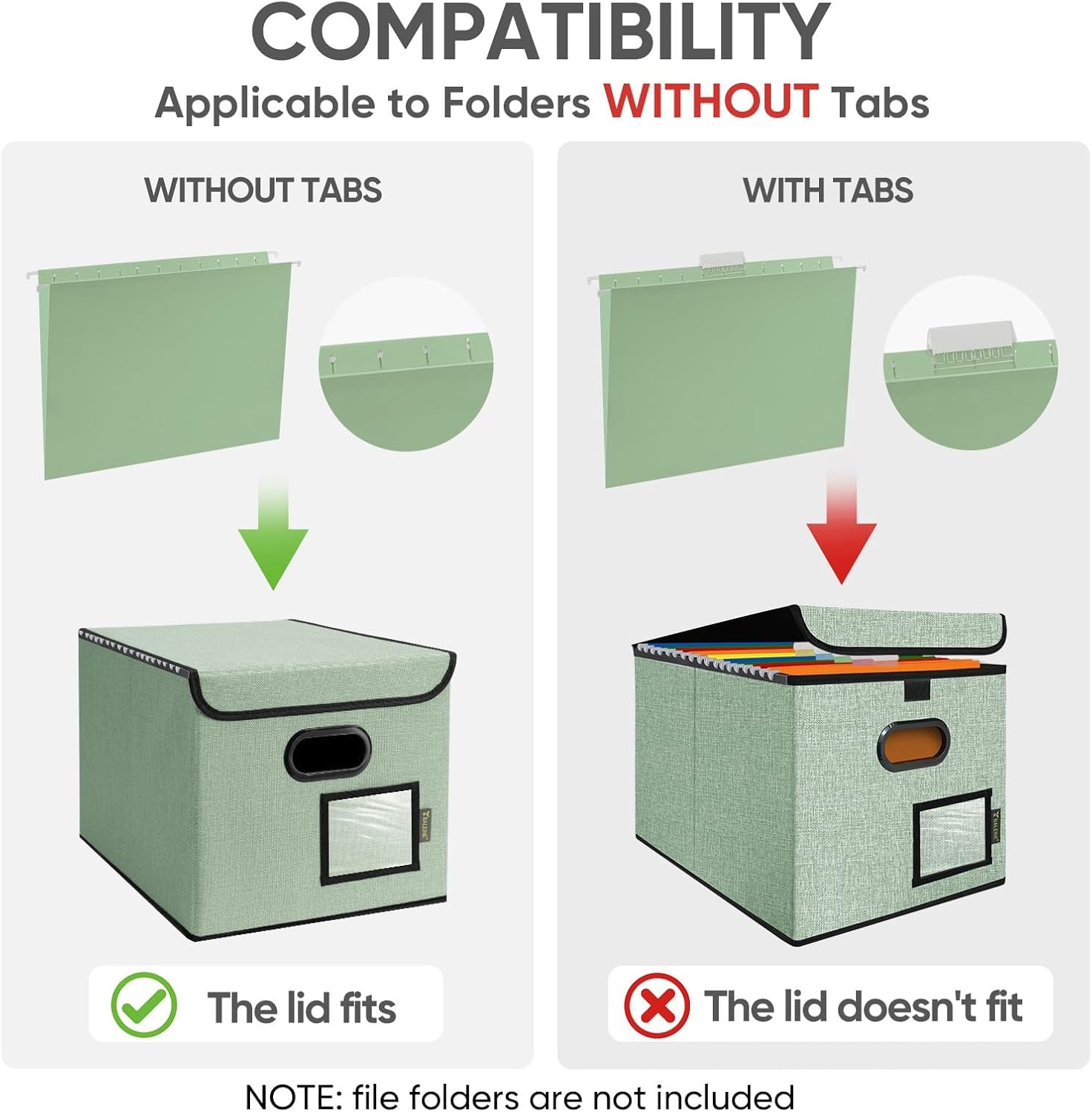 - [UNIVERSAL SIZE] Our file box with lid fits letter-sized files. It is designed for efficiency and functionality, with its smooth PVC slide rails on both sides, you can effortlessly slide file folders for easy access and neatly arranged. The lid fits snugly on the box after hanging folders. (NOTE: file folders are not included)