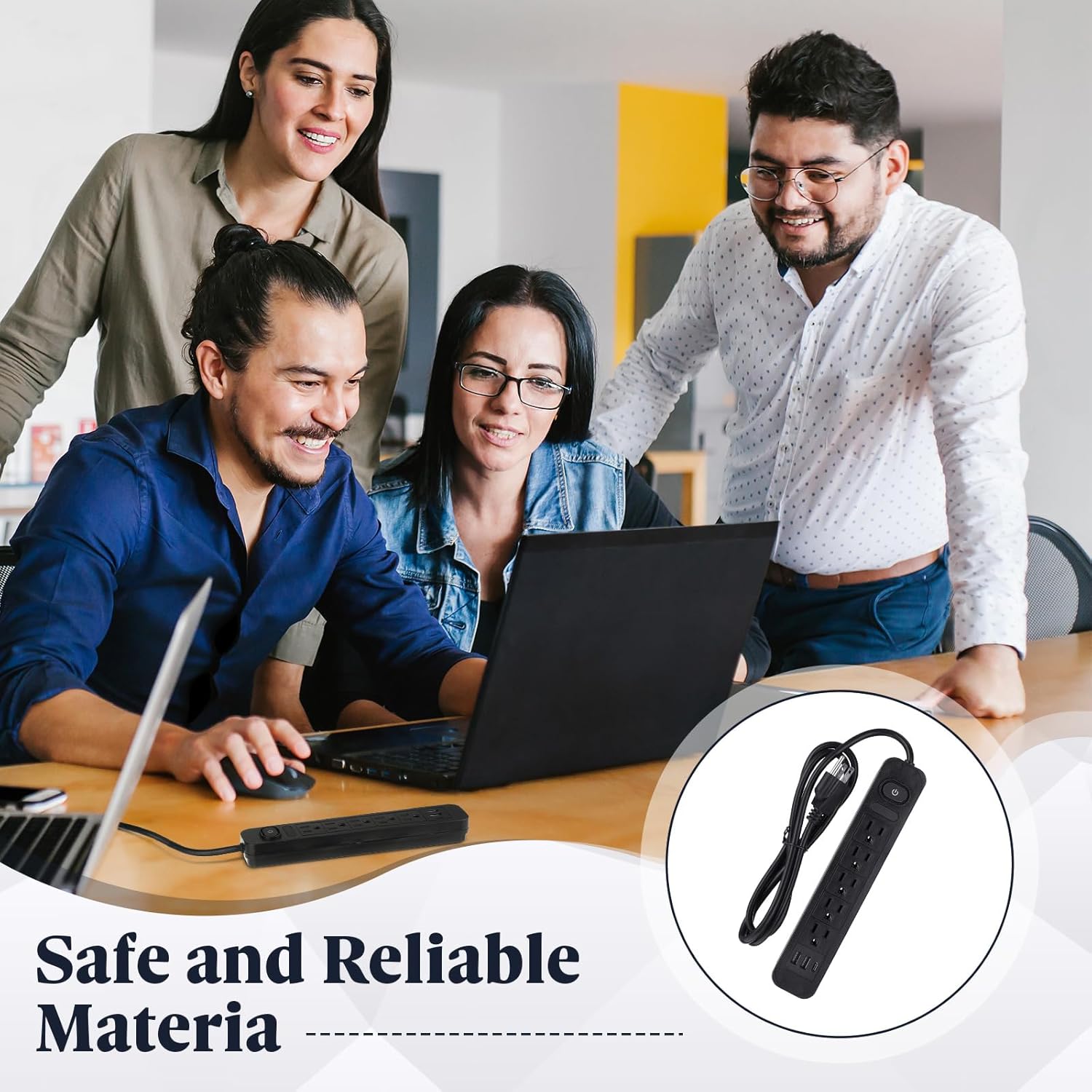 Kanayu 6 Pieces Power Strip Surge Protector with 5 Ac Outlets and 3 USB Ports, Heavy Duty Extension Cords Plug for Home Office Dorm(4.92 ft,Black)