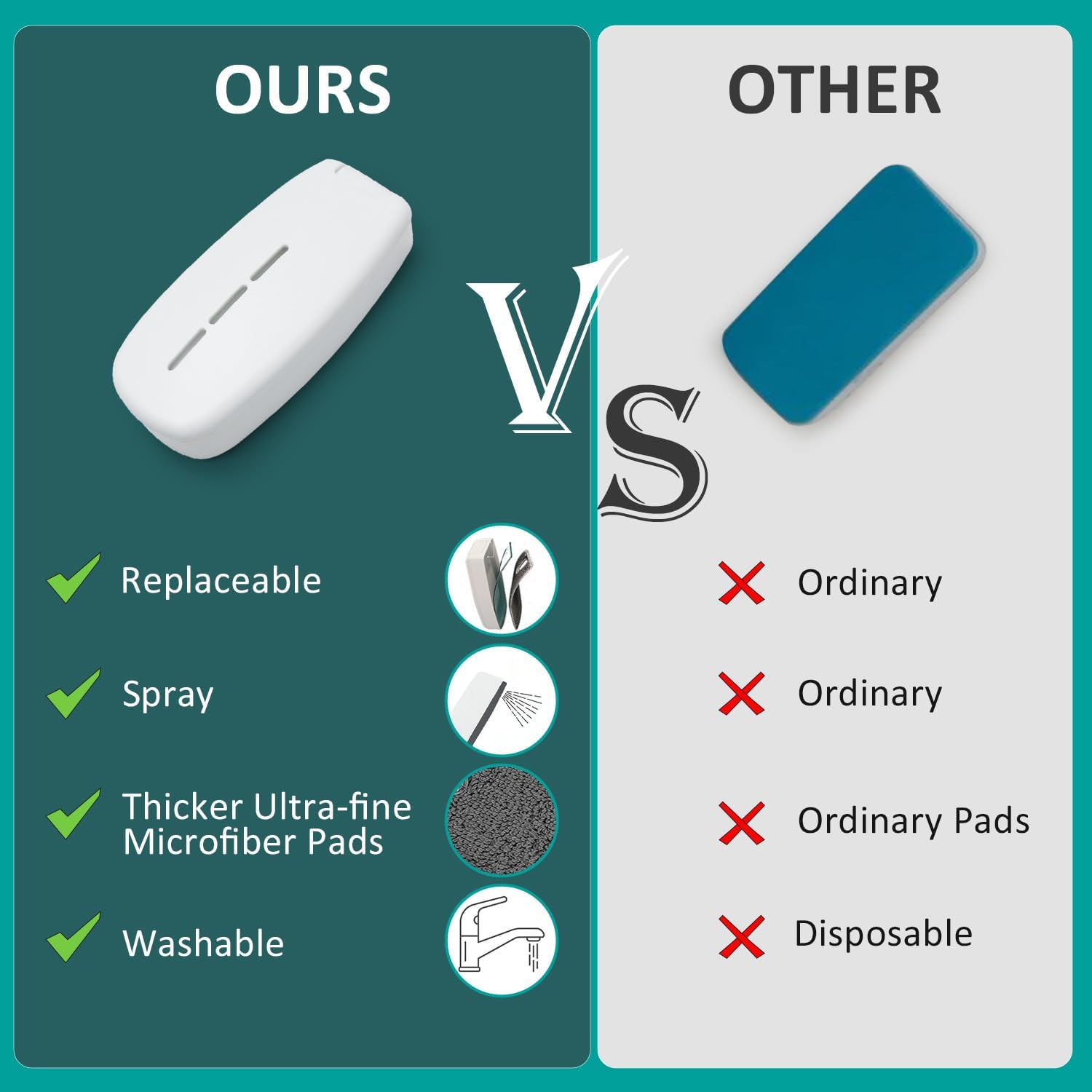 - 【REPLACEABLE & REUSABLE】- This spray cleaner eraser comes with extra 2 microfiber cloths pads for replacement needs. Durable, not easy to fade or wear. Safe and environmentally friendly. Our product's life can be extended significantly with easy replacement