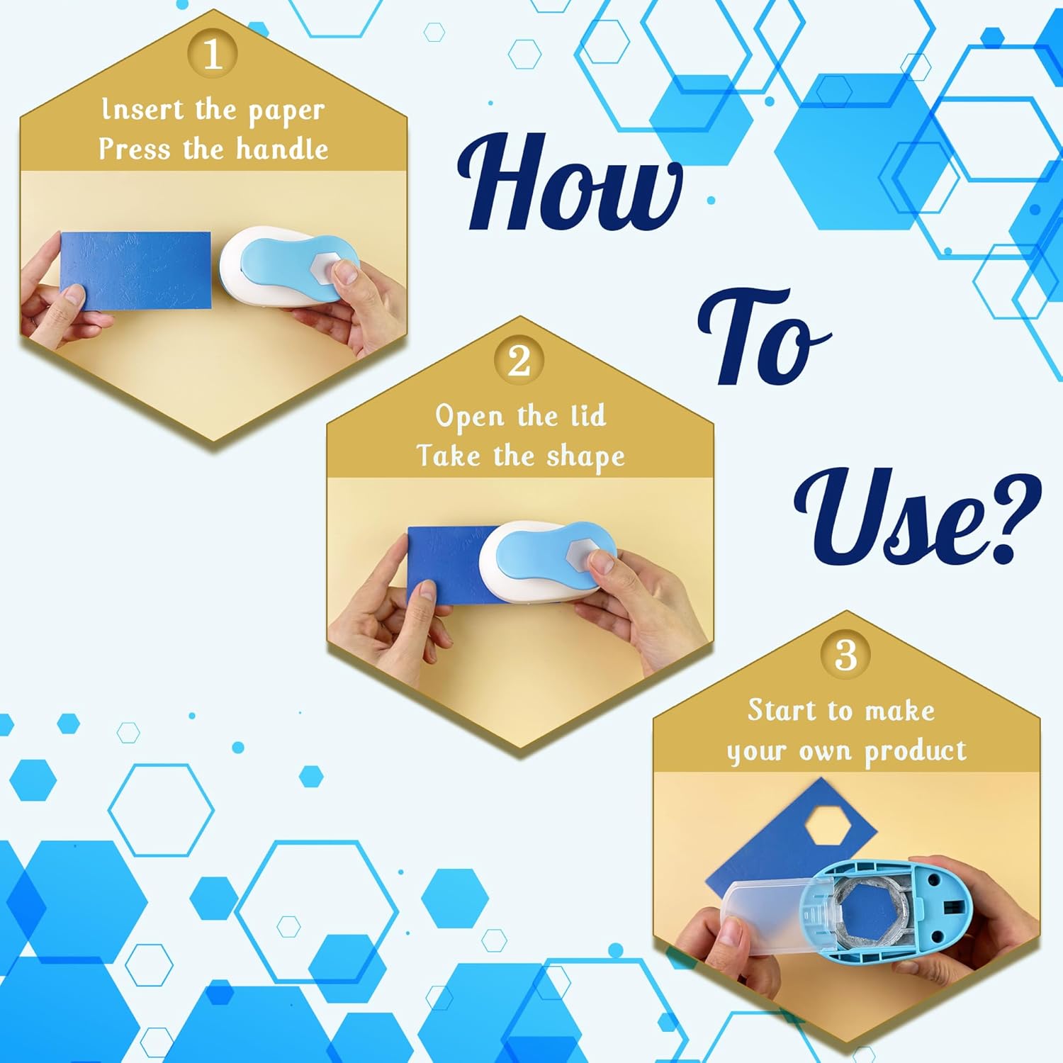 - β€ SAVE TIME: Spring-action lever makes the punch easier and more comfortable to use and gentle your hands, just put a paper inside it, and take a little bit effort to the handle, comfortable to use, it created consistent and identical hexagon very easily.