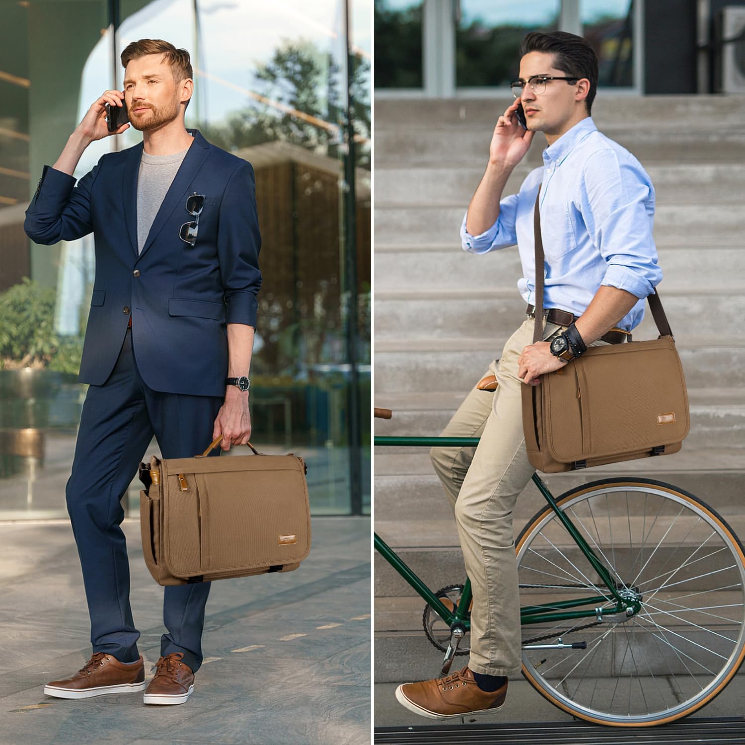 ESTARER Messenger Bag 17-17.3 Inch, Men's Computer Bag Water-resistant Canvas, Laptop Shoulder Bag for Travel Work College, Brown