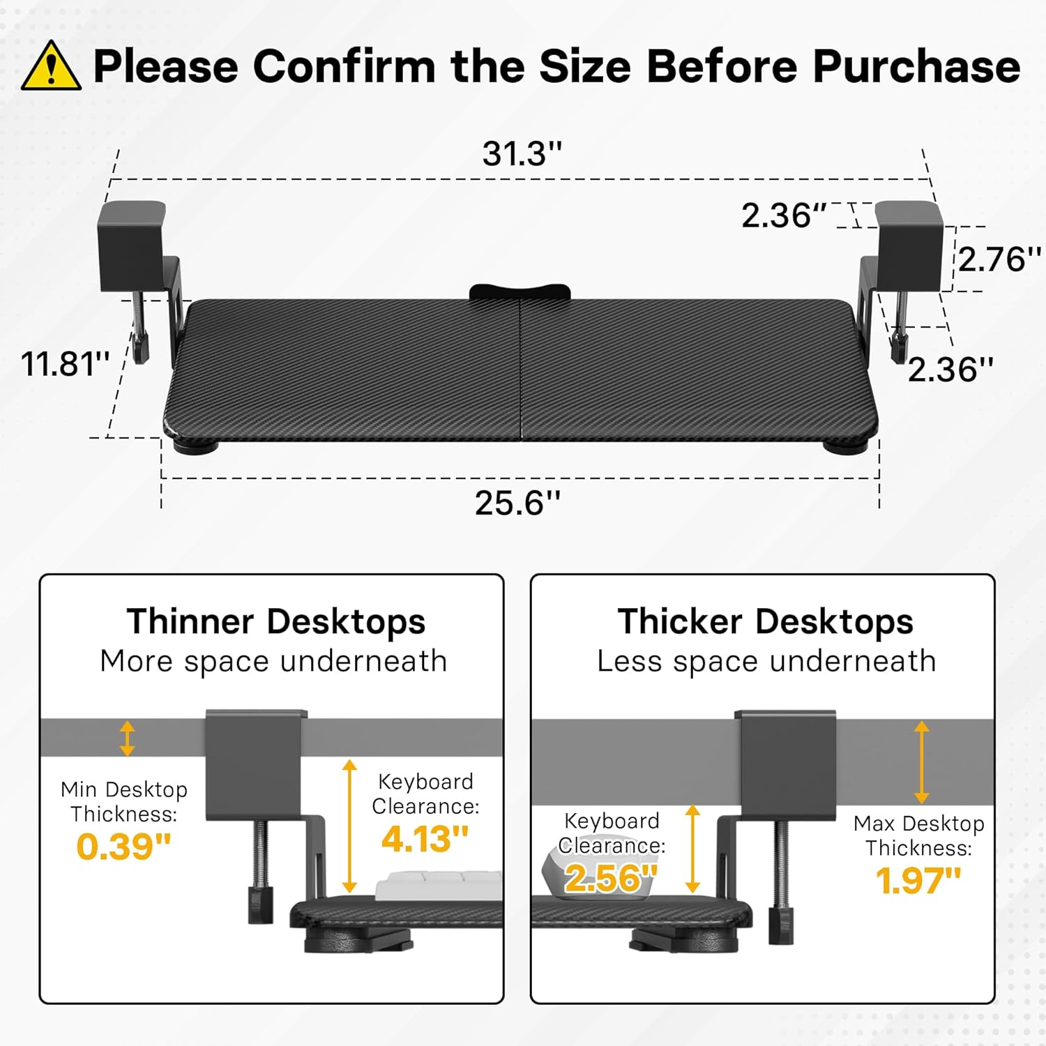 - ✅ MEASURE YOUR DESK BEFORE ORDERING – The tray requires at least 25.8" of width and 11.4" of depth underneath your desk to slide in and out smoothly. Confirm these dimensions to avoid fitment issues