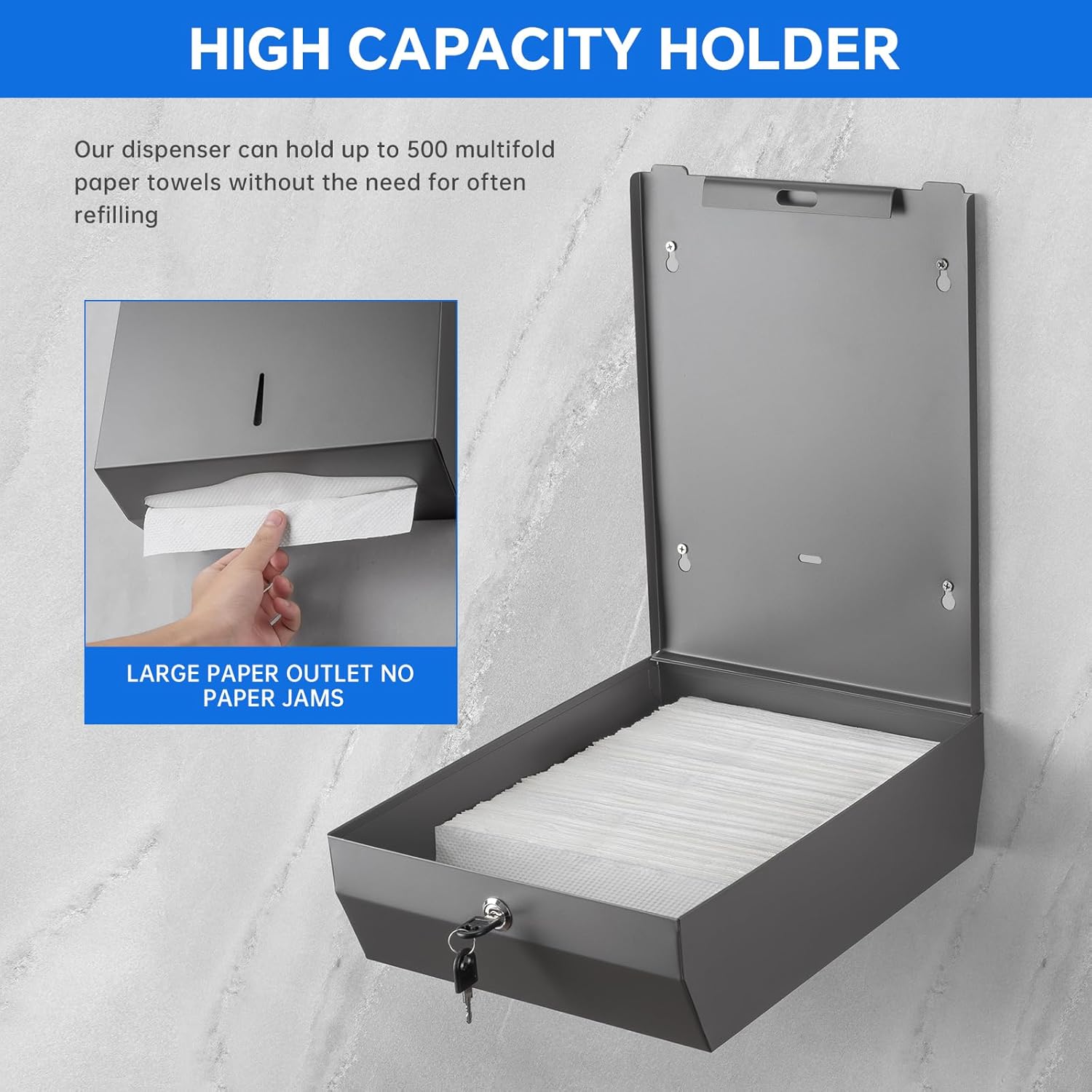 Paper Towel Dispenser Wall Mount Commercial c-fold/Multi-fold/Tri-fold, Touchless Hand Towel Dispenser with Lock(Dark Grey)