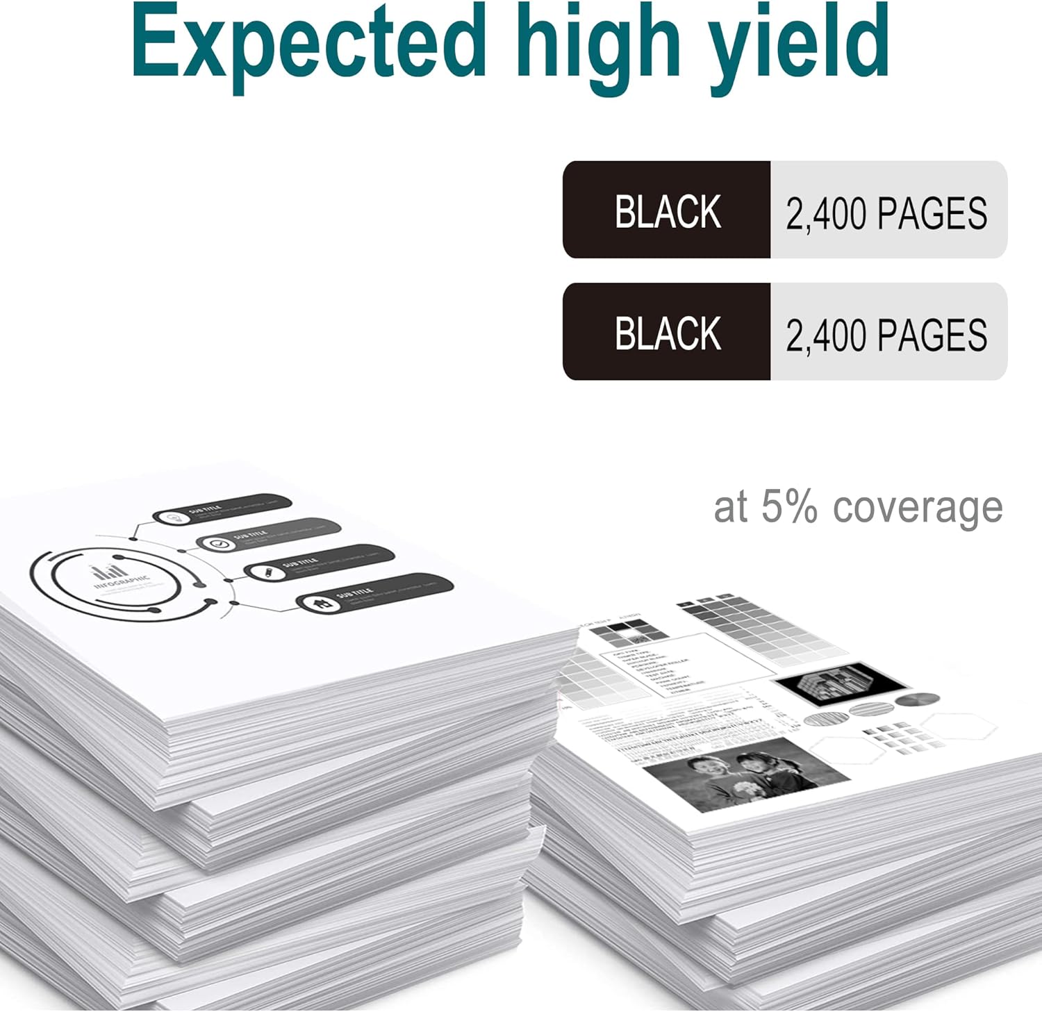 - High Page Yield: Up to 2400 pages per black toner cartridge (at 5% coverage may vary by type of use)
