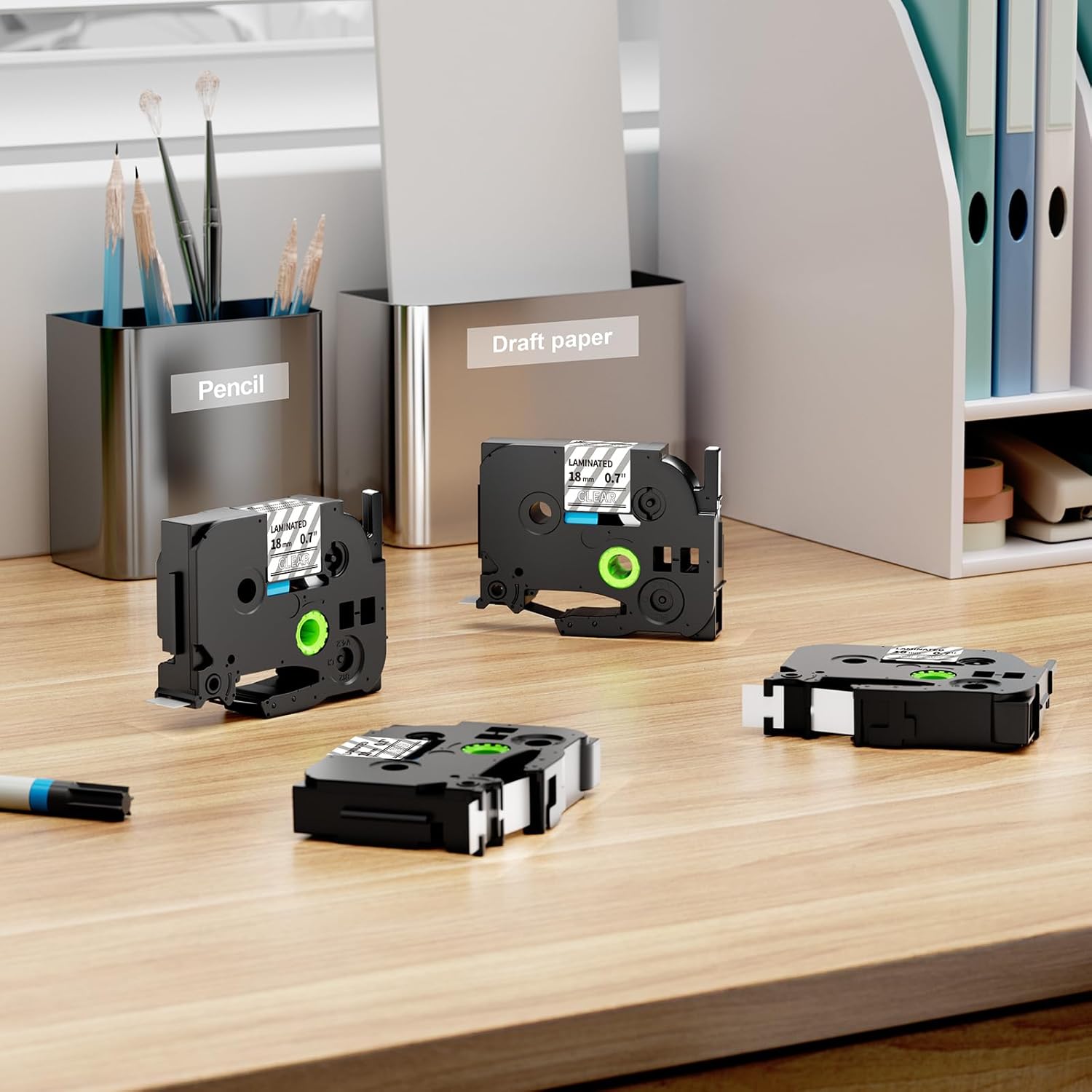 - [Kindly note] To keep the tze145 label tape with adhesion, please make sure that the sticking surface is clean and flat before labeling. These tz tape 18mm can stick very well to smooth surfaces, including paper, plastic, steel, wood and more