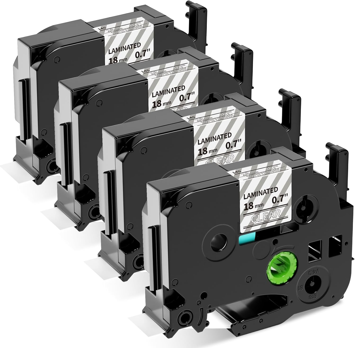 - [Details] 4 packs compatible with Brother p touch tze tz tape 18mm. Model: TZe-145 (TZe145, TZ-145, TZ145). Color: White print on clear tape. Width: 3/4 inch (18mm 0.7 inch), Length: 26.2 feet (8 meter) for each tze-145 label tape