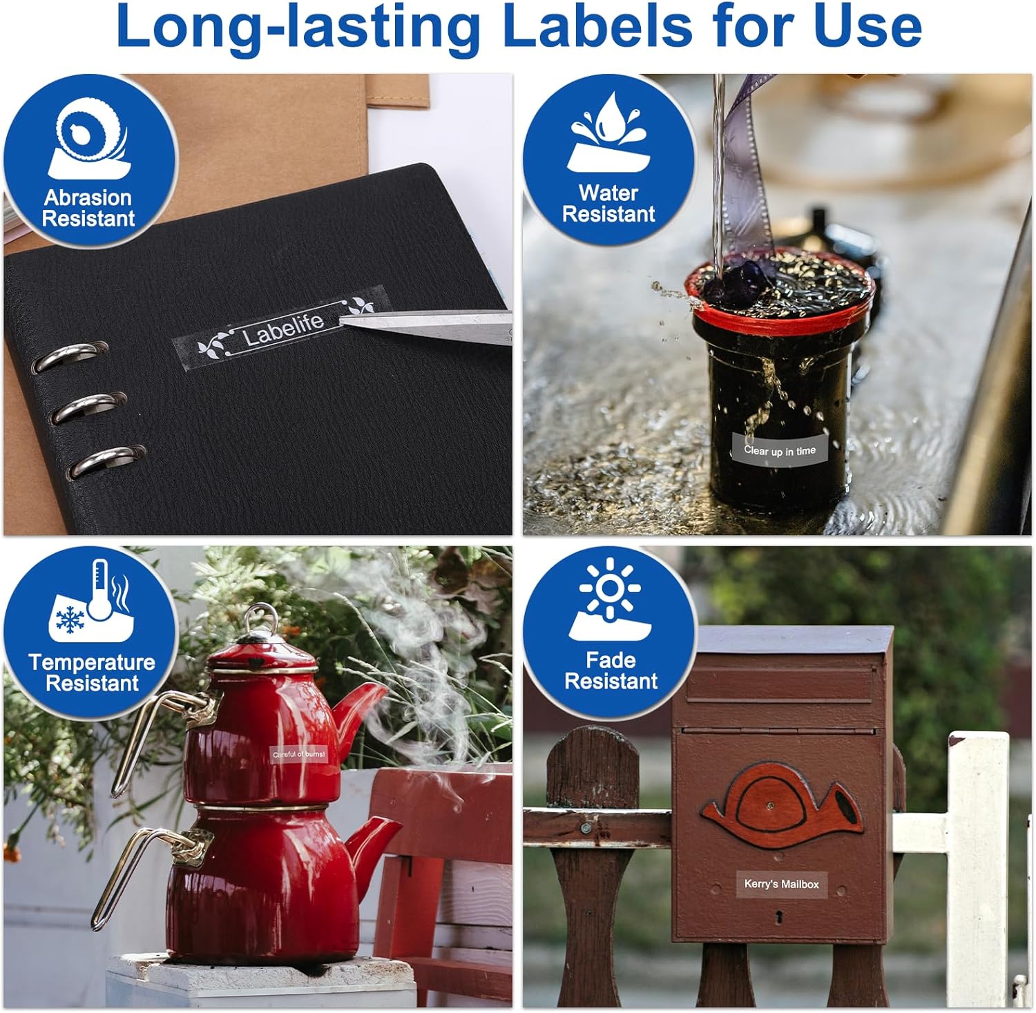 - [Application] Labelife compatible with Brother P touch 3/4 inch 18mm white on clear is good addition for business, home, office, shop, warehouse and more. 18mm label tape clear white is useful for labeling kitchen, shelving, cabinets, files, folders and accessories. Great for creating name badges and luggage labels and More