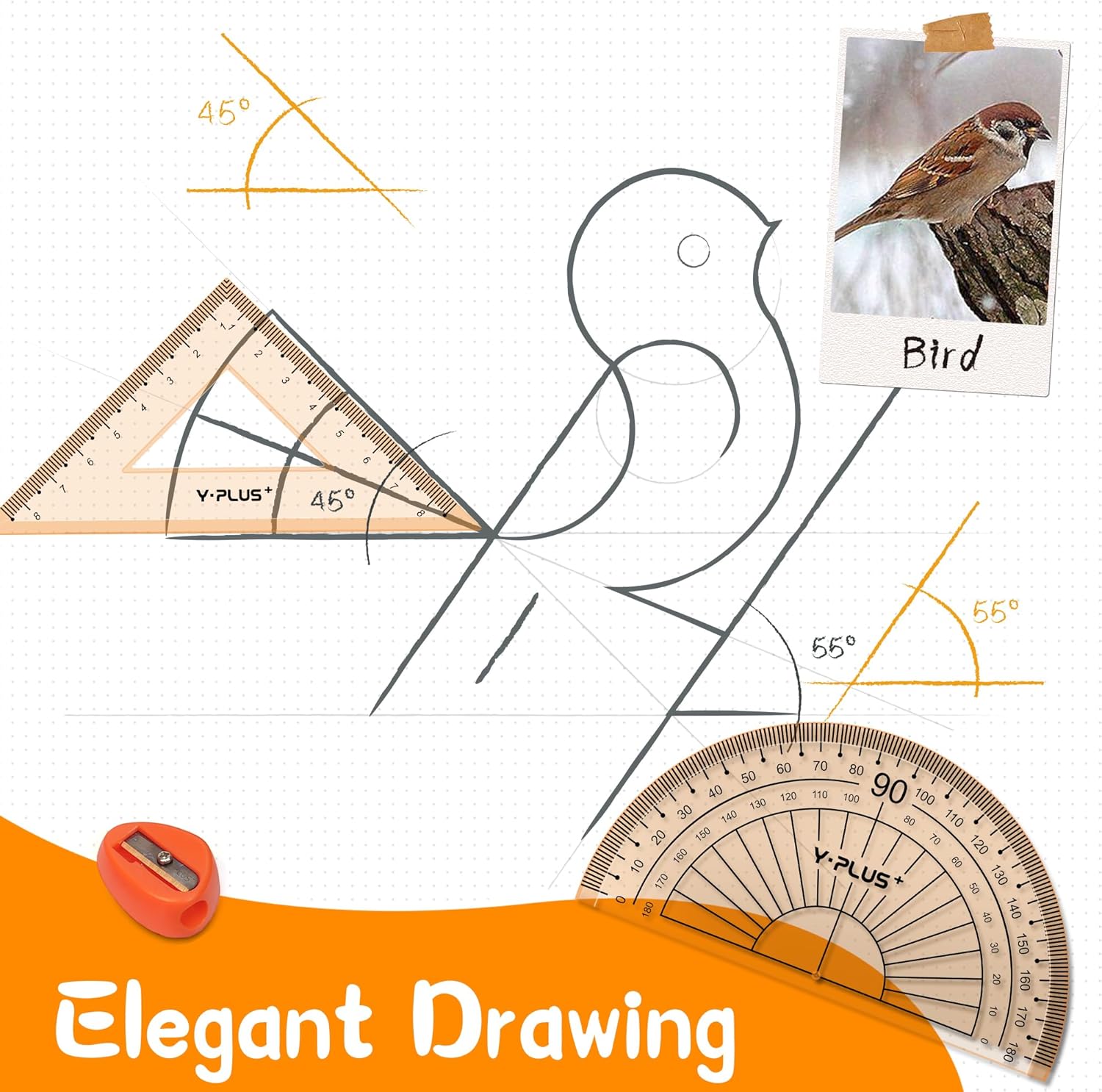 YPLUS Geometry Set for Students, Math Protractor Compass, Box of Protactors Kit for Class Supplies and School Kids Toddler - 11 Pcs