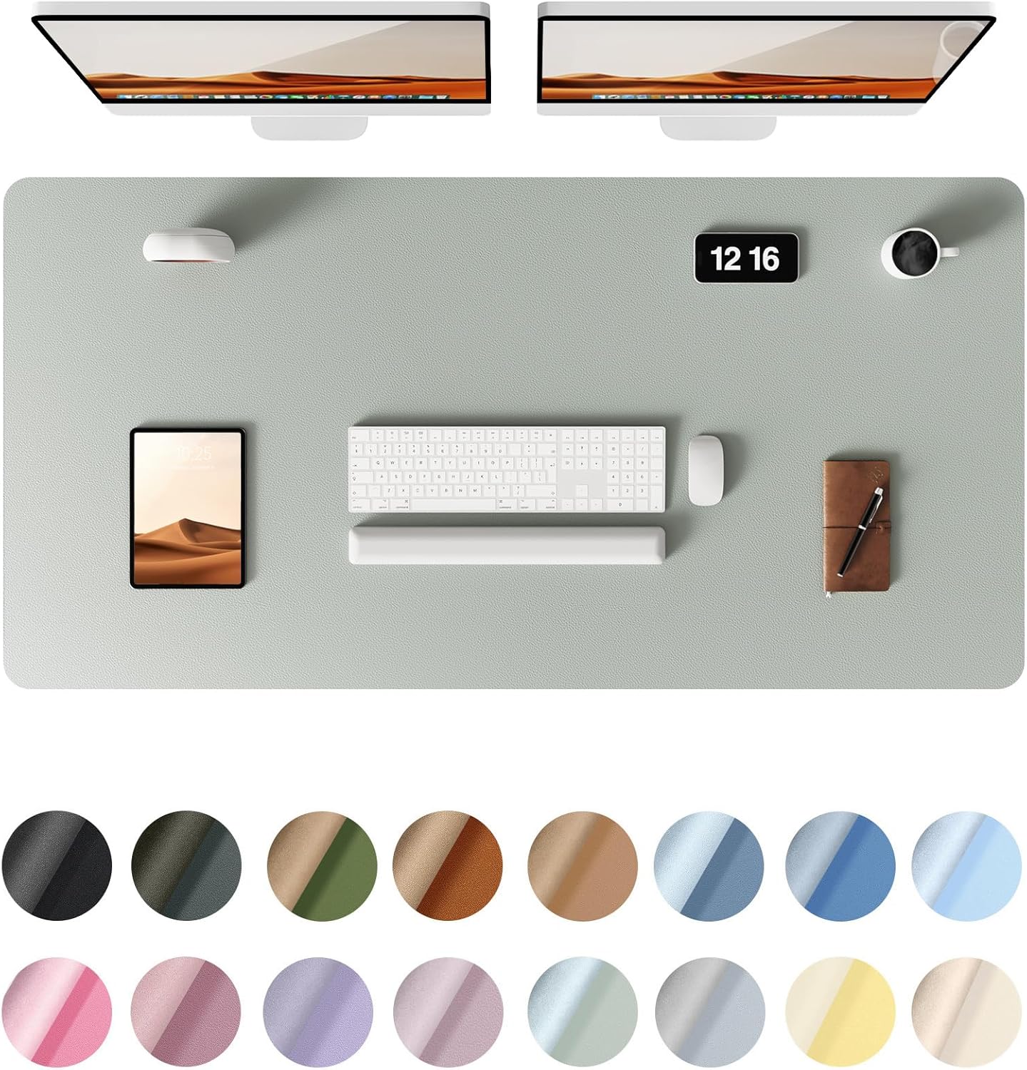 YSAGi Leather Desk Protector, Office Mat, Large Mouse Mat, Non-Slip PU Leather Blotter, Laptop Desk Pad, Waterproof Writing Pad for Office and Home (Grayish Green, 47.2" x 23.6")