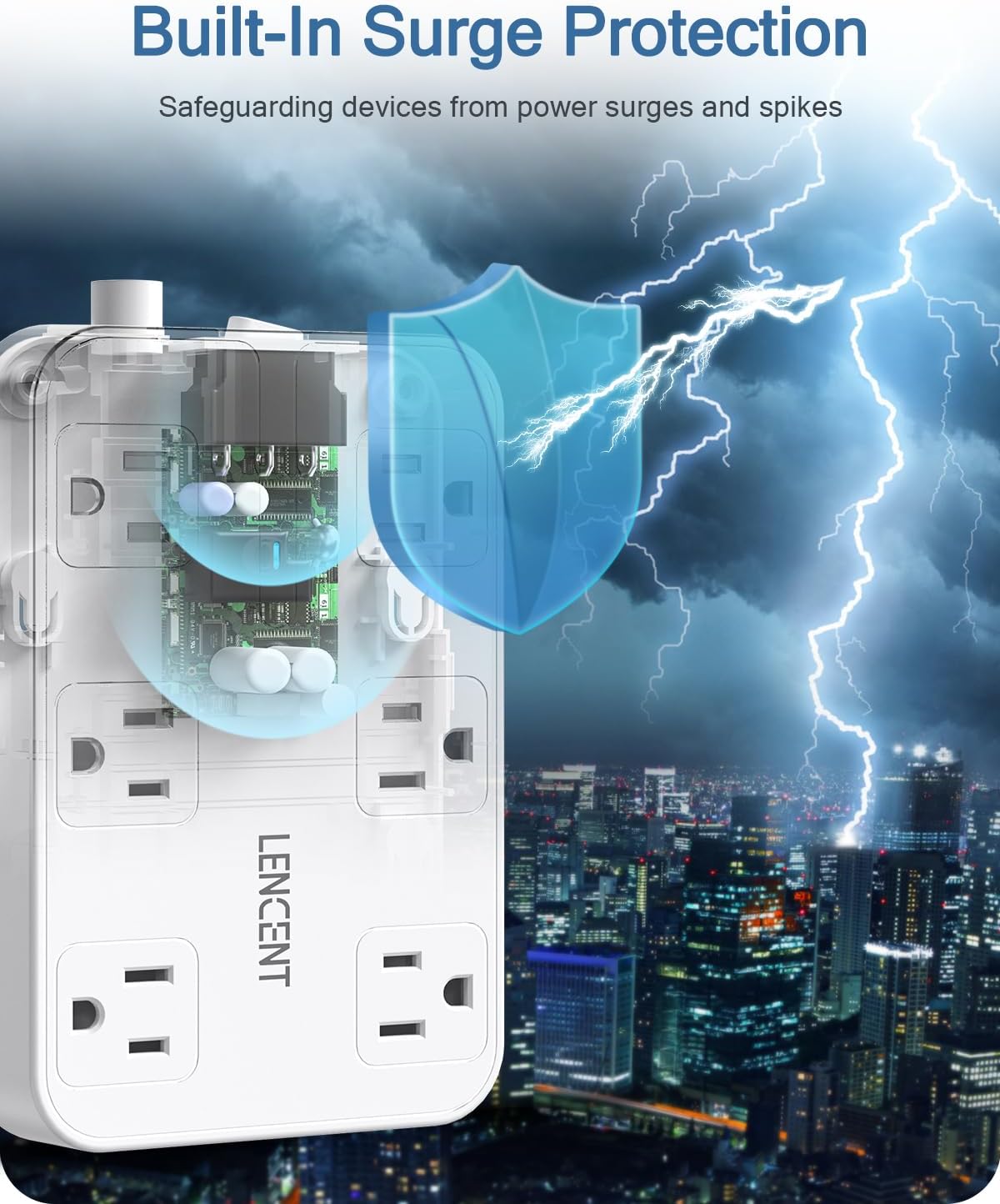 - 10-in-1 Design Charging Station: The 2 prong power strip with 6 AC outlets(1625W Max), 3 USB-A(5V/2.4A 12W Max) and 1 USB-C(5V/3A 15W Max) ports can safely charge up to 10 devices from a single small wall charging unit. The USB ports will automatically detect devices and deliver the optimal charging current to meet your various charging needs. Compatible with mobile phone, tablet, laptop, camera, e-readers and more.