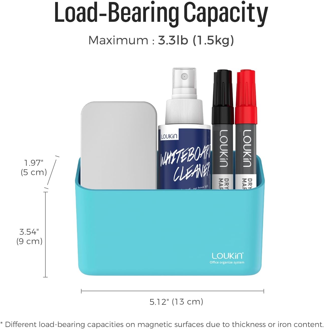 - SUPER LOAD BEARING: Secure magnetic storage organizer for whiteboards with a maximum loadbearing of capacity 3.3 lb (1.5kg).