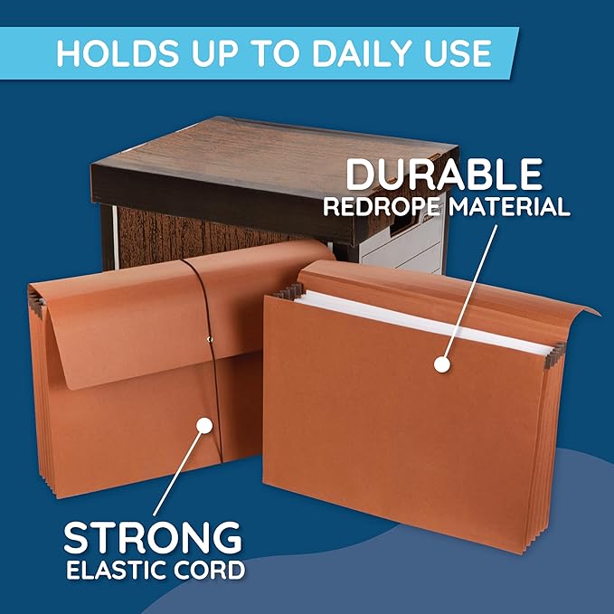 Blue Summit Accordion File Wallet with Flap and Cord Closure, Legal Size, 5.25” Expansion – 10 Pack