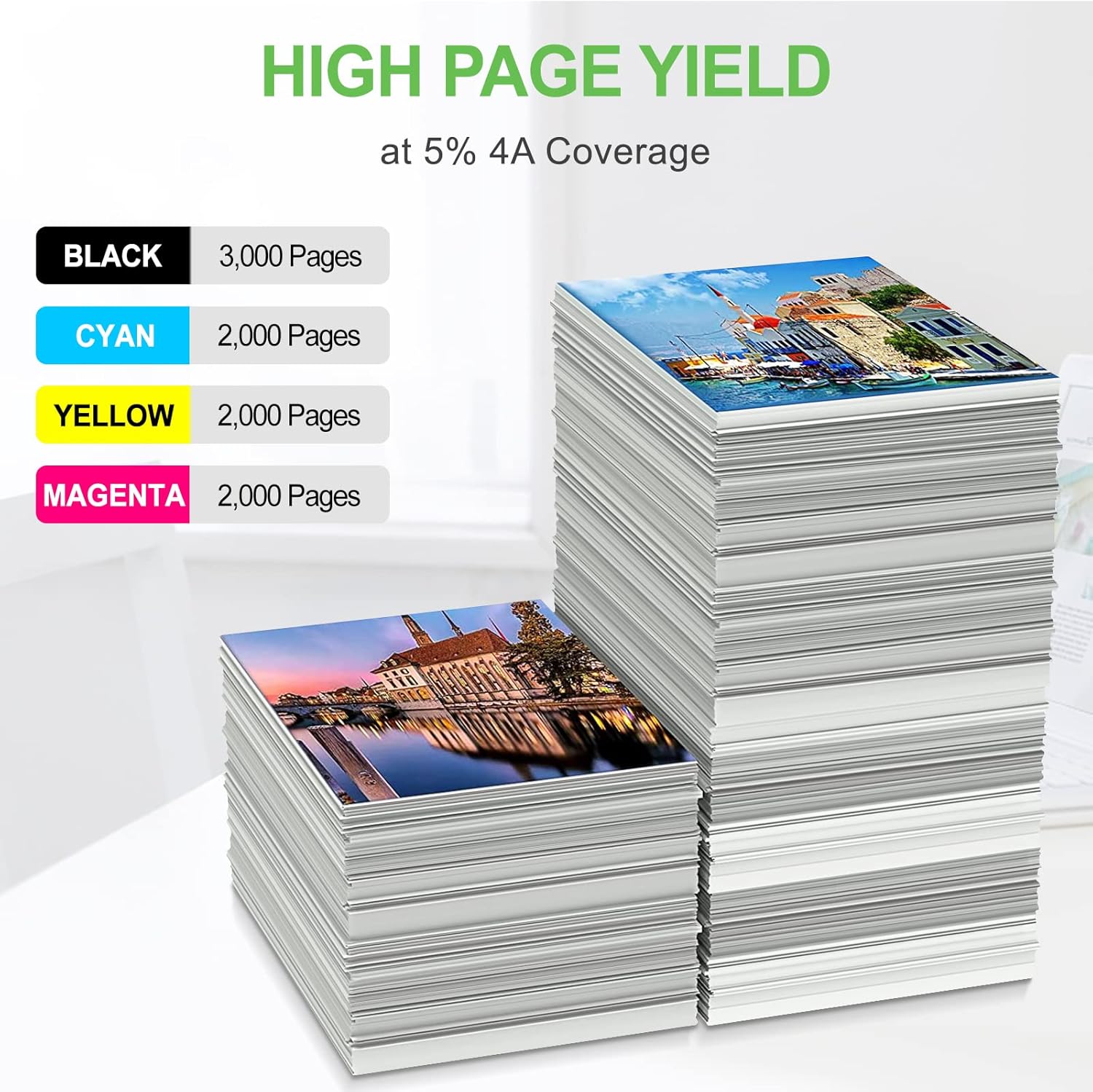 - 【High Yield Page】Up to 3000 pages in black, 2000 pages in color at standard 5% coverage of A4 paper.