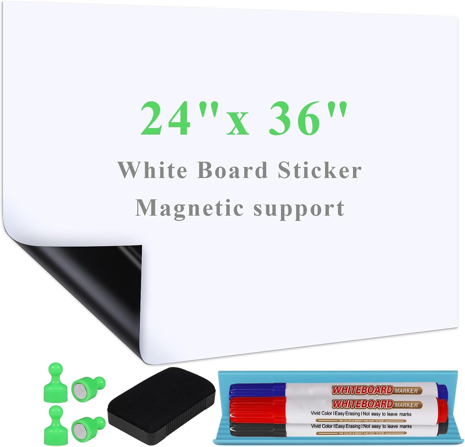 White Board Sticker Adhesive Backing, 24" x 36" Magnetic Dry Erase Board Contact Paper Stick on Wall, Whiteboard Sheet for Teacher Kids Classroom, Include Markers, Eraser with Magnet