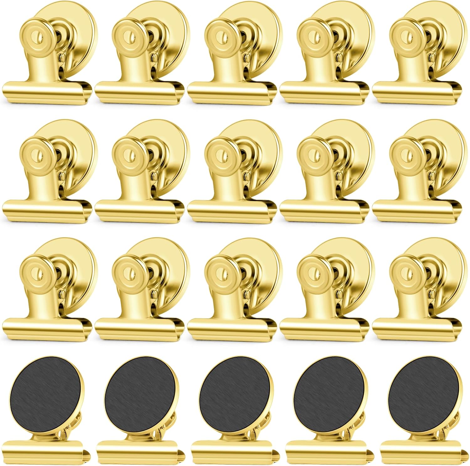 20 Pack Fridge Magnet Refrigerator Magnets, Gold Magnetic Clips Whiteboard Magnets, Magnet Clips Heavy Duty for Photo Displays, Home, Office, Classroom