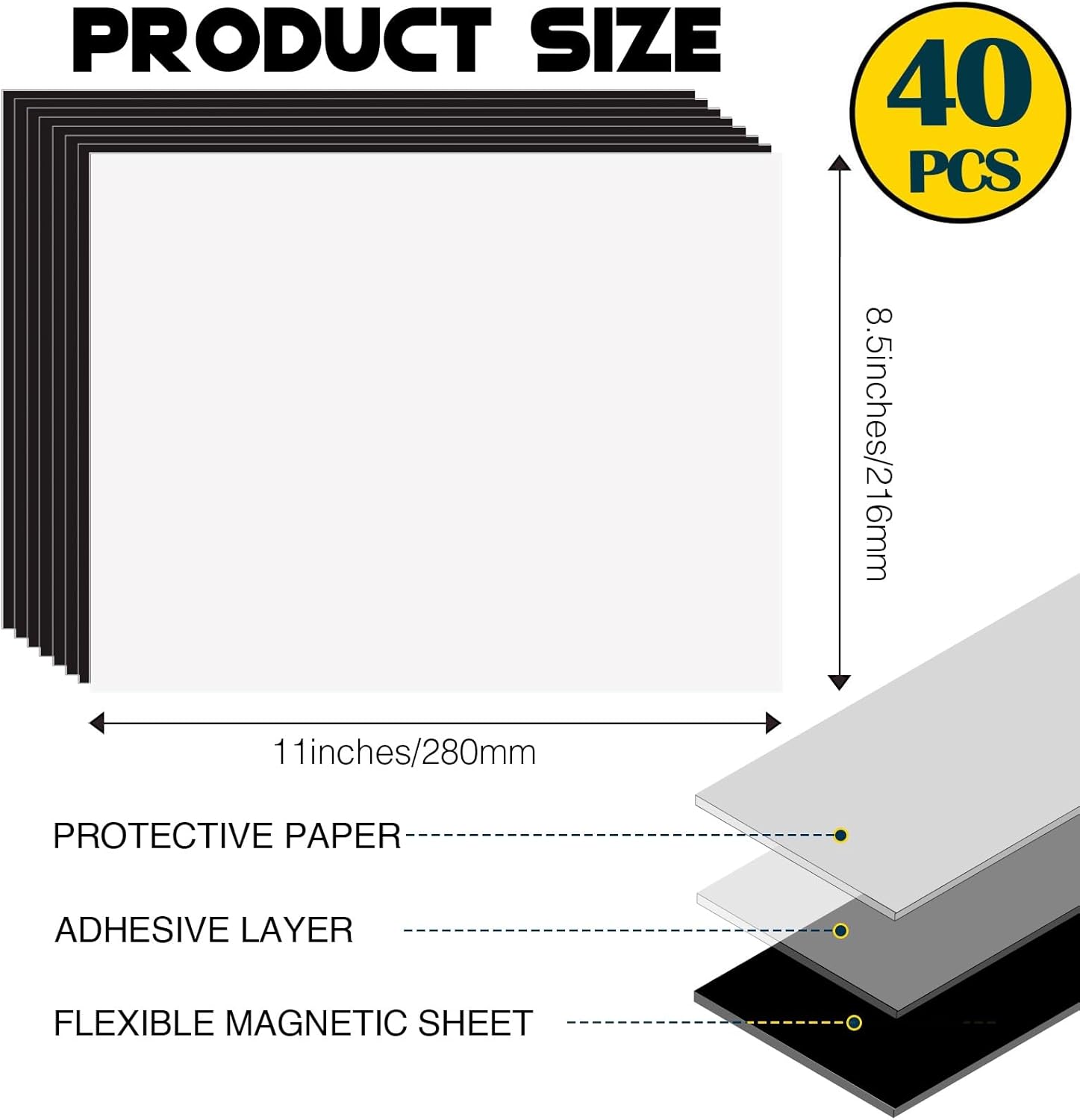 8.5X11 Inches Picture Magnets for Refrigerator, Letter Size (Bulk 40 Pieces),Magnetic Sheets with Self-Stick Adhesive for Home/Classroom/Office,Easy Cut DIY Photo Magnet