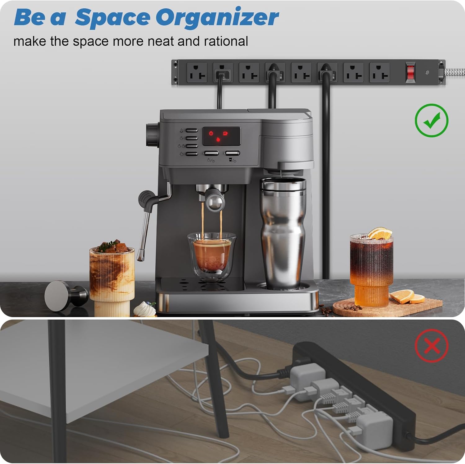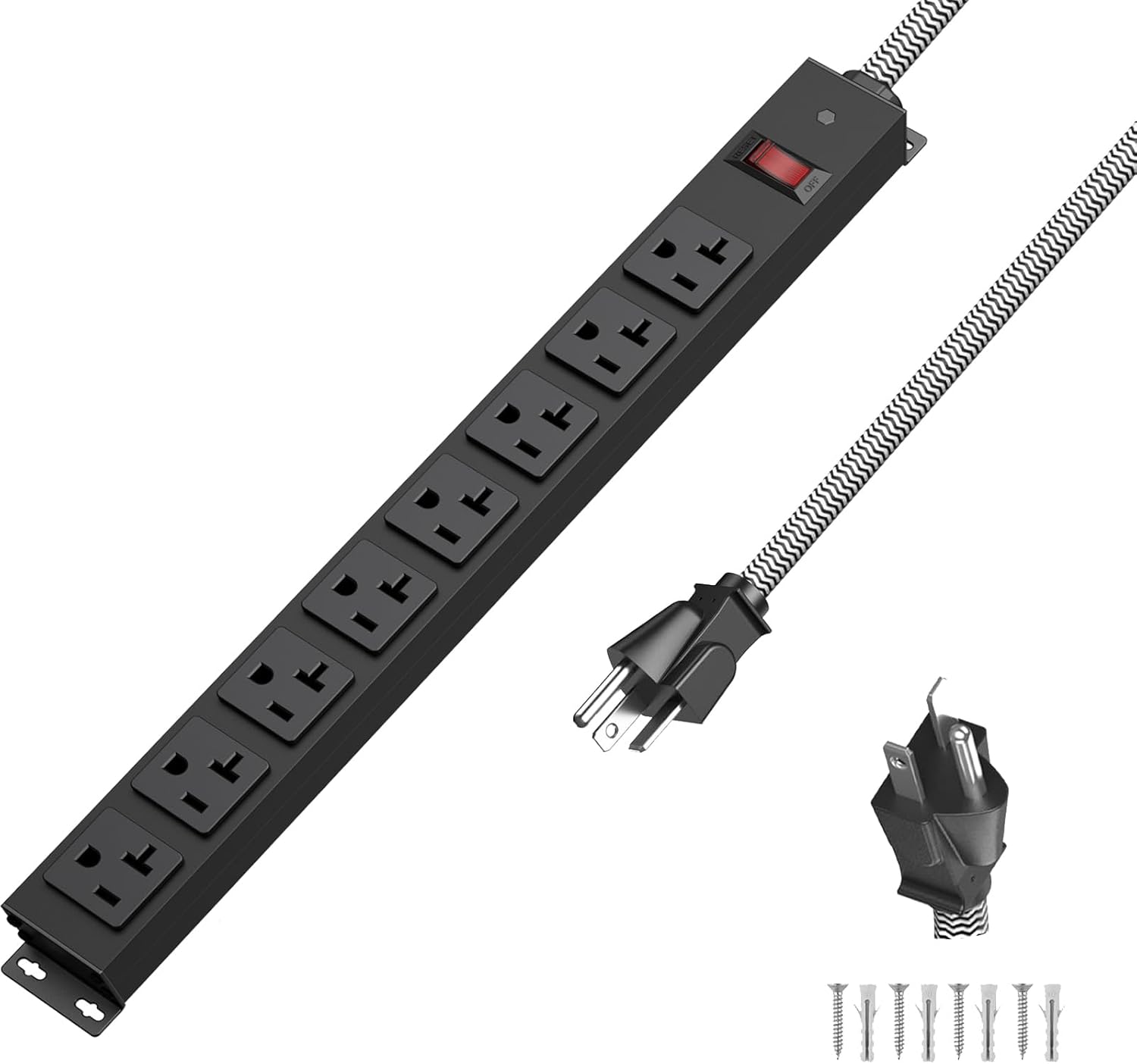 - βMETAL WALL MOUNT POWER STRIP: This mountable power strip boasts a high-quality metal casing, ensuring durability and making it perfect for use in the garage, workshop, office, or on a workbench. With 4 metal mounting holes, it facilitates quick installation on desktops, under tables, workbenches, or walls, accommodating both vertical and horizontal setups.