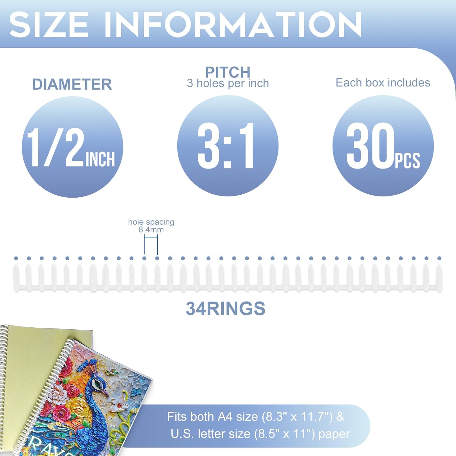 - User-Friendly Design: Easily reopens and closes for quick page addition or removal. Compatible with 3:1 pitch binding machines and 3:1 pitch paper (3 holes per inch), with hole spacing of 8.4mm from center to center.