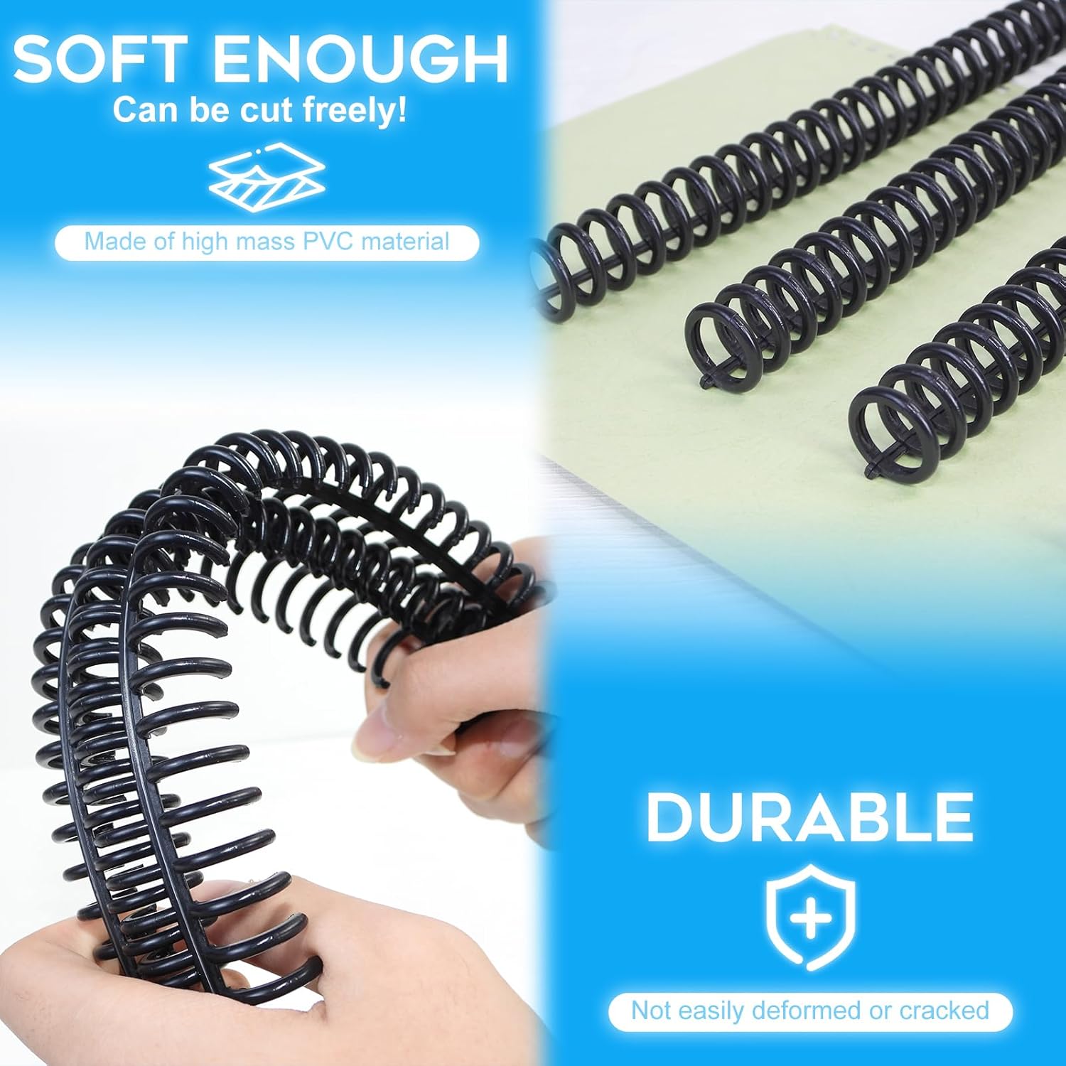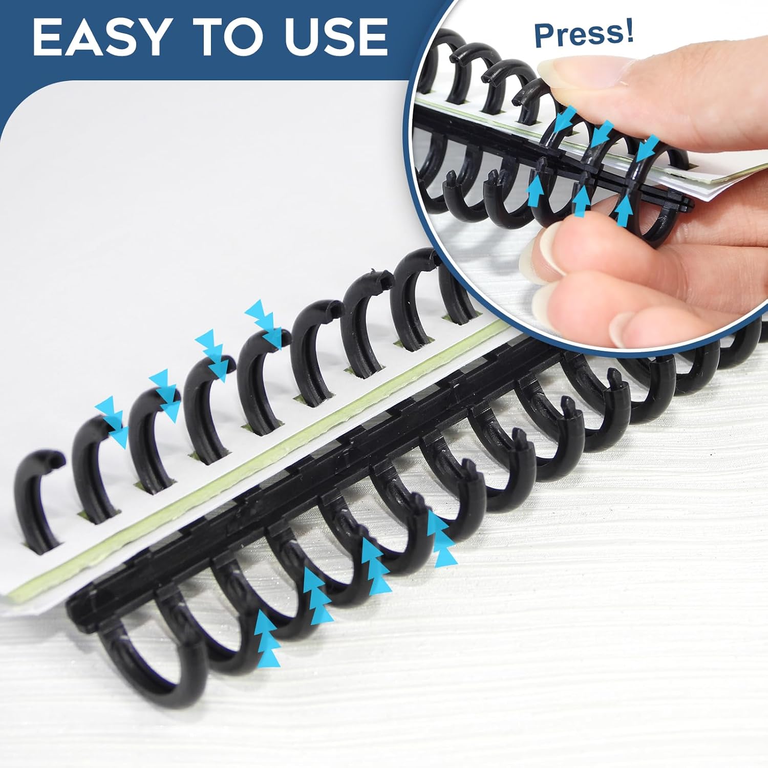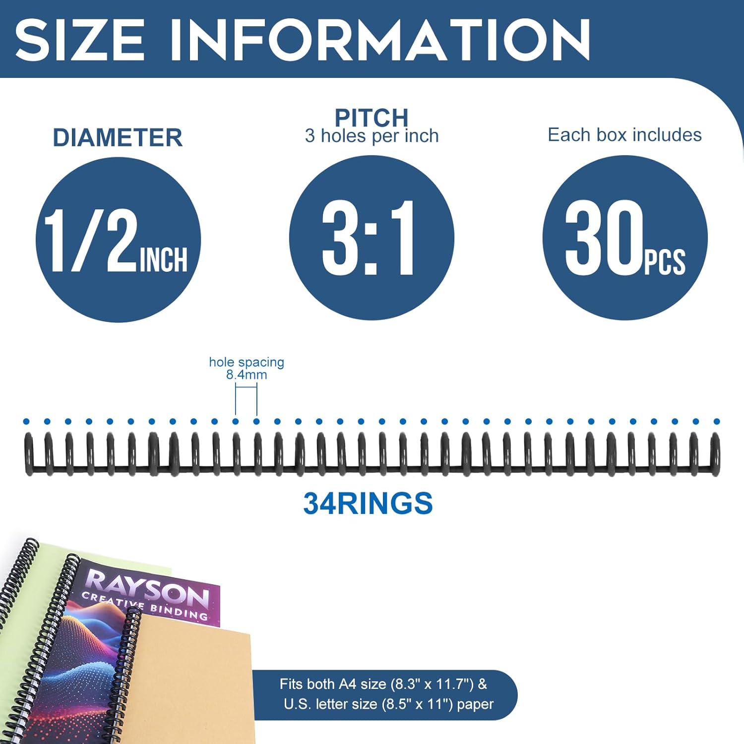 - User-Friendly Design: Reopens and closes for page addition or removal; compatible with 3:1 pitch binding machines and suitable for 3:1 pitch paper. Hole spacing is 8.4mm from center to center.
