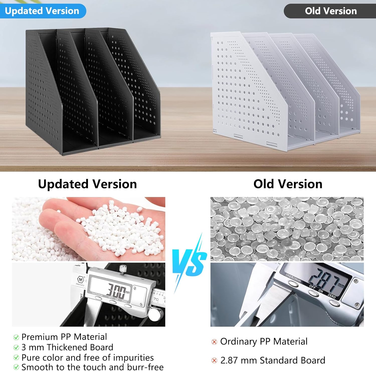 - COLLAPSIBLE MAGAZINE HOLDER: The binder holder organizer with foldable function allows it to flexibly expand or fold according to the size of the space. If you don't have too many files, you can fold the empty compartments to save desktop space.