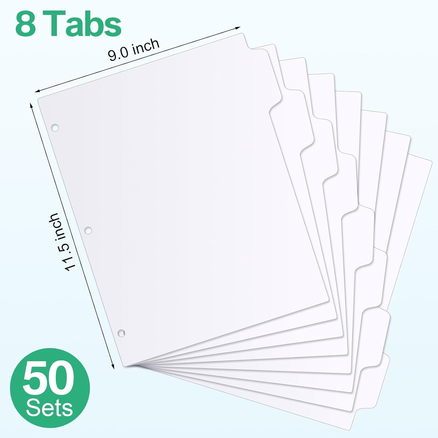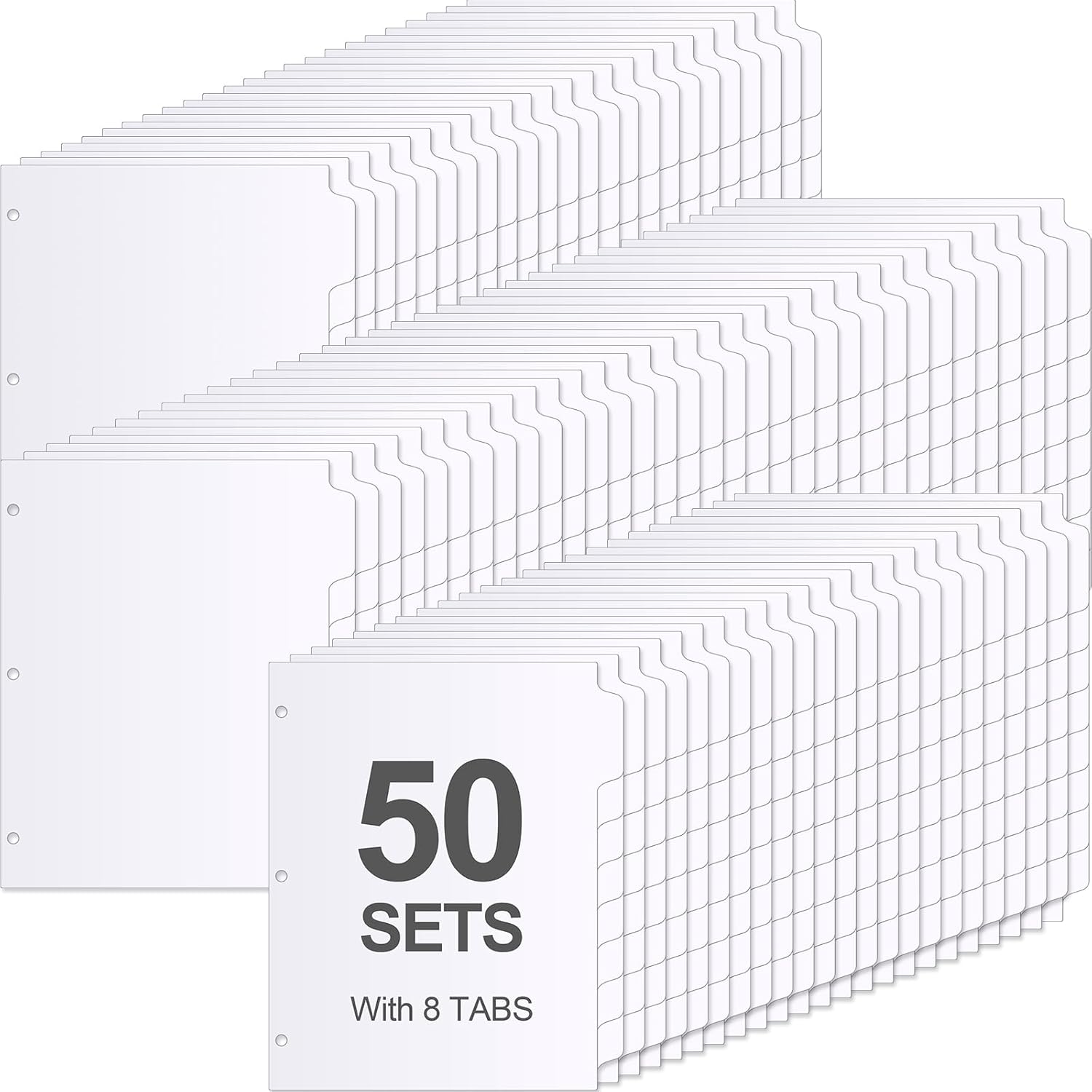 - Package Contents: you will receive 50 sets of 3 ring binder dividers with tabs, 1/8 cut, each with 8 tabs, 400 pieces in total, enough to meet your daily work and study needs, you do not have to worry about running out of them easily