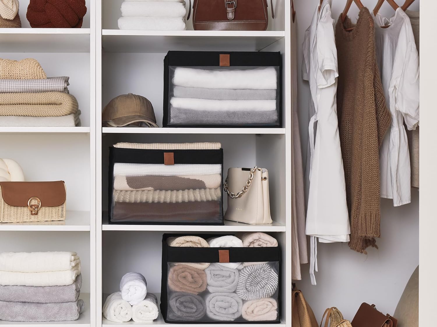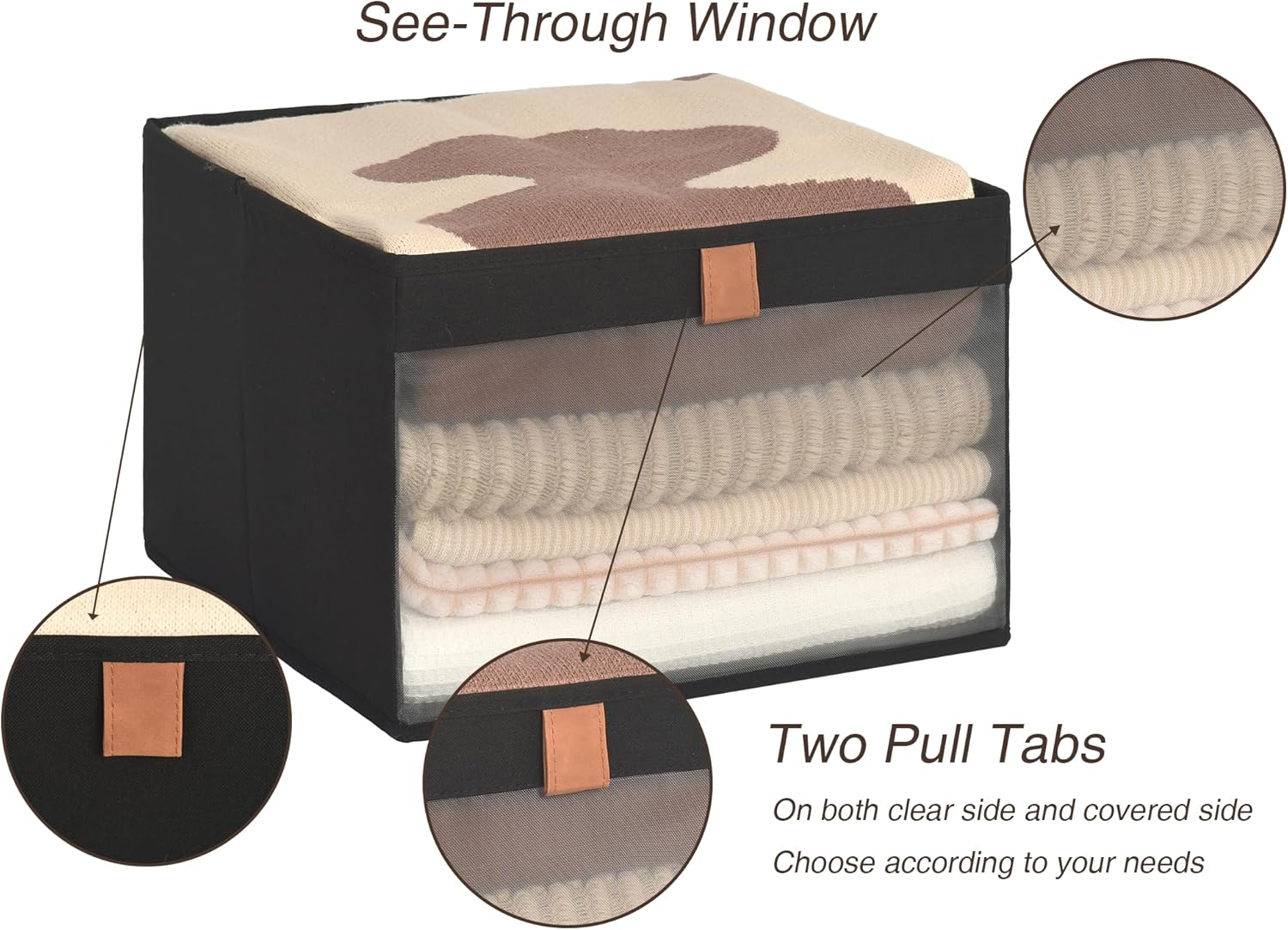 StorageWorks Closet Storage Bins, Extra Large Storage Baskets with Clear Window and Handles, Foldable Fabric Organizer for Clothes, Shelves, Black, 3 Pack