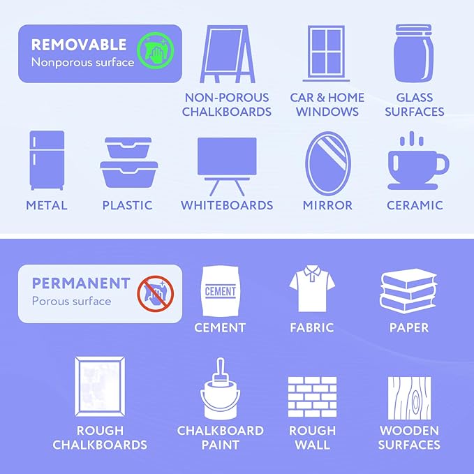 - Versatile: Suitable for use on chalkboards, glass, mirrors, and most non-porous surfaces. Ideal for mothers, students, artists, and vendors